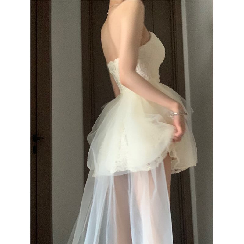 ワンピース セクシー レース Aライン チュール素材 切り替え 透かし彫り チューブ S M L