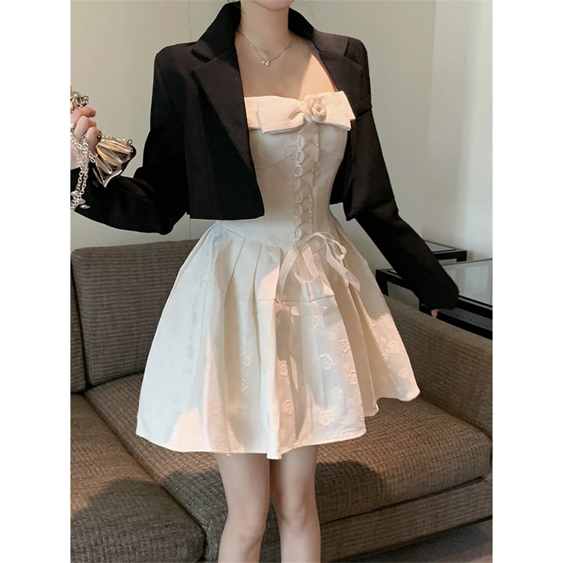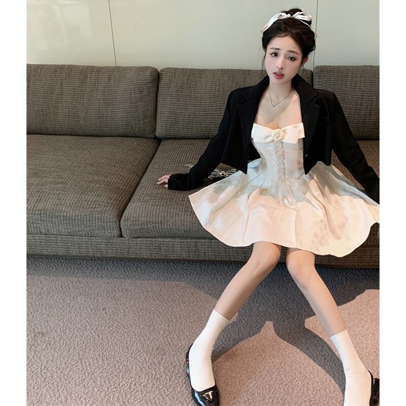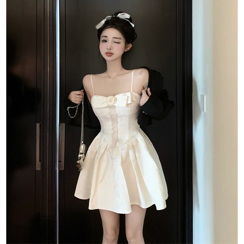 ワンピース レトロ エレガント デザイン感 かわいい Aライン 蝶結び 吊りワンピース XS S M