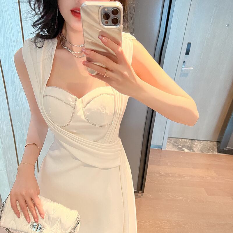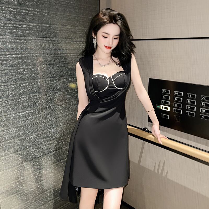 【夕暮薔薇シリーズ】ワンピース セクシー ノースリーブ パーティー 不規則 ブラック ホワイト S M L XL
