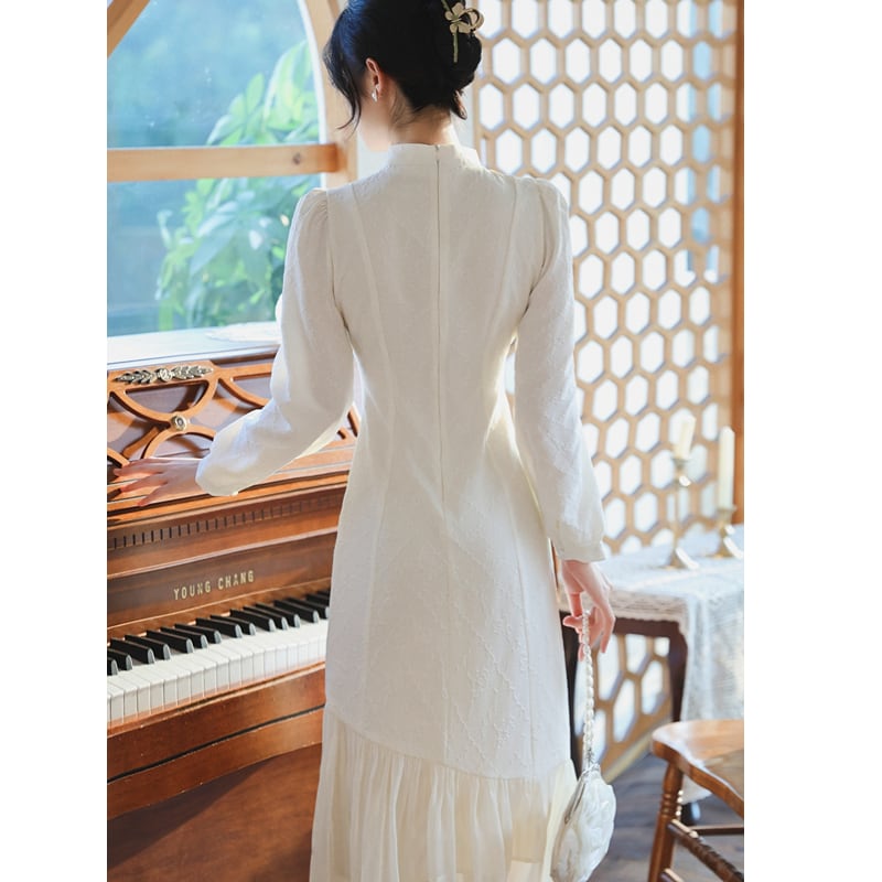 【花田シリーズ】チャイナドレス エレガント フィッシュテール ベージュ S M L XL