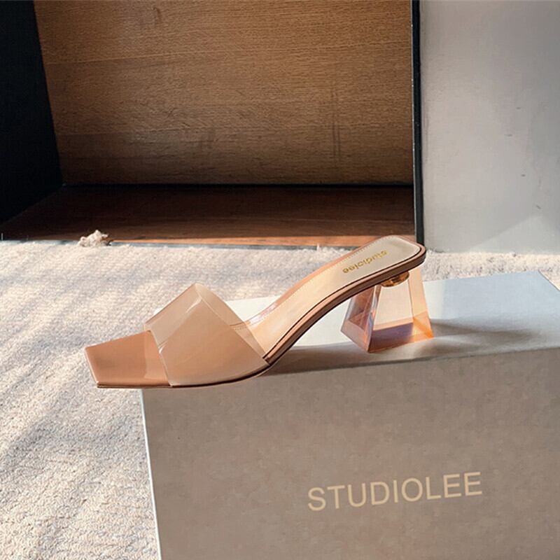 シューズ サンダル 女性らしい 一目惚れ 綺麗め 美脚効果 ピンク アプリコット 5CM