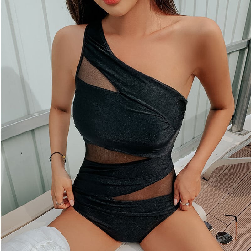 水着 温泉 ビーチ オフショルダー 黒 ワンショル ブラック M L XL