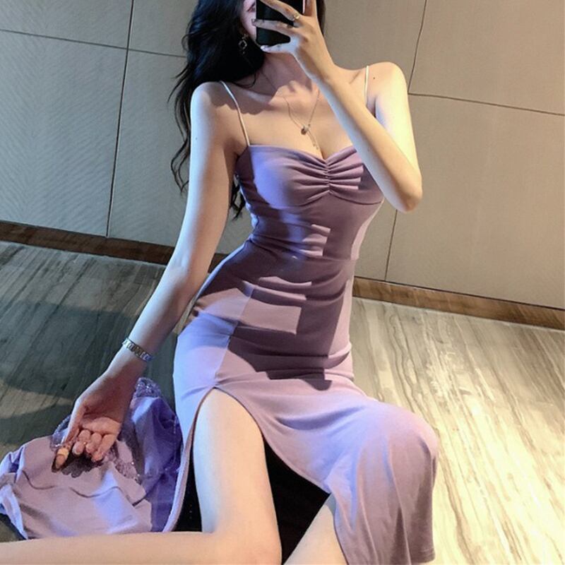ワンピース 美しいシルエット セクシー パーティー ロング丈 パープル ブラック ピンク グリーン S M L