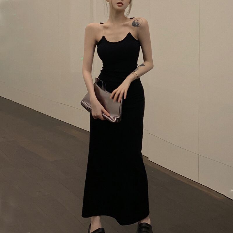 ワンピース 人気新入荷 セクシー 無地 デザイン感 ロング丈 ブラック