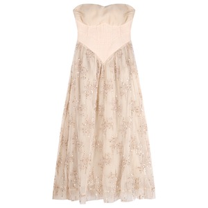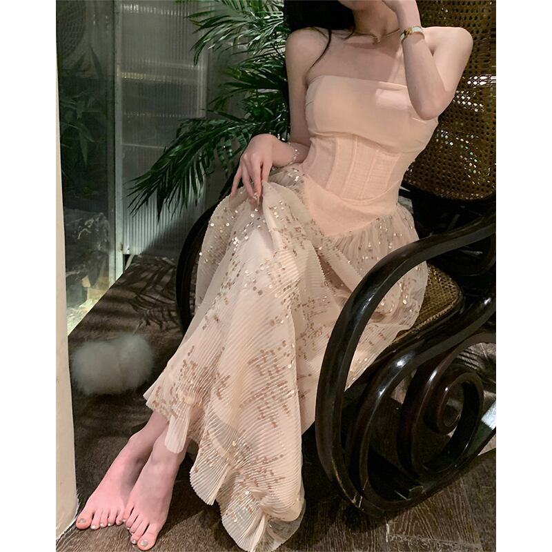 ワンピース セクシー チューブ 切り替え Aライン スパンコール ピンク S M L