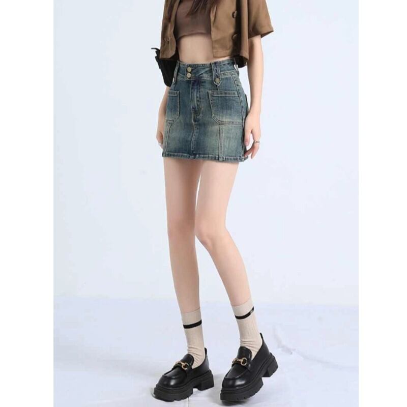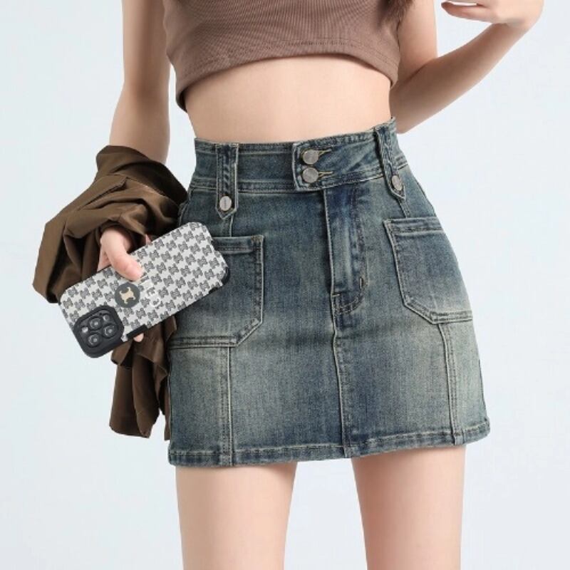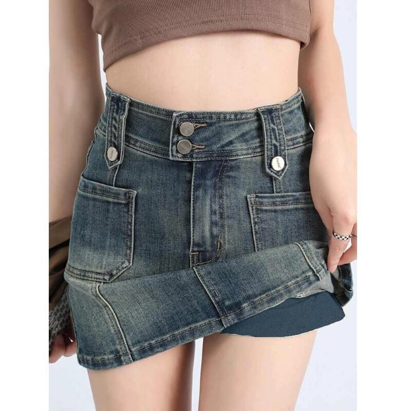 ボトムス スカート セクシー Aライン カジュアル デニム ブルー ブラック S M L XL