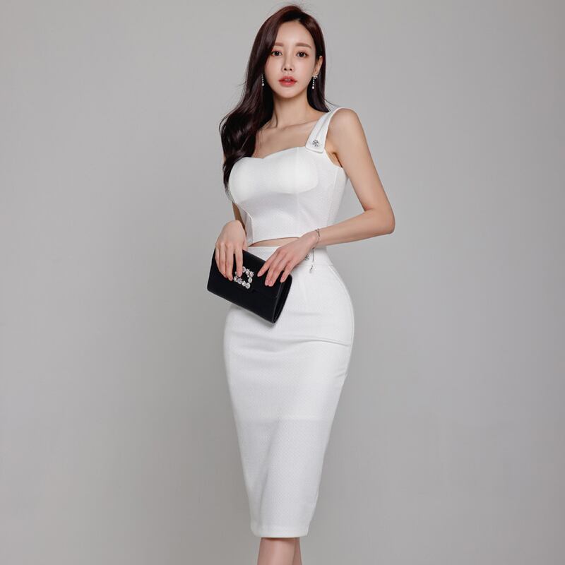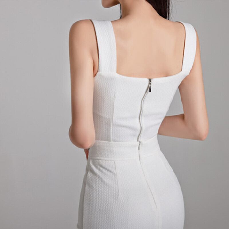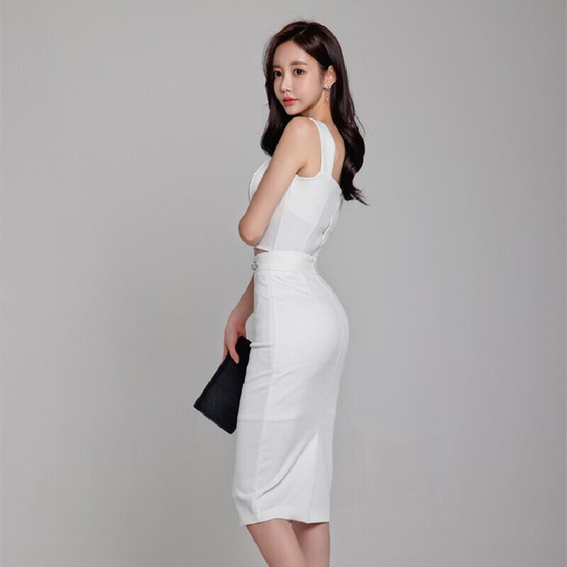 セットアップ トップス+スカート 白 スクエアネック バックスリット ホワイト S M L XL
