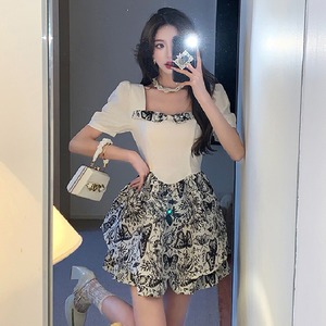 【CHERRYシリーズ】ワンピース 2色展開 花柄 黒 スクエアネック ブラック ホワイト S M L XL