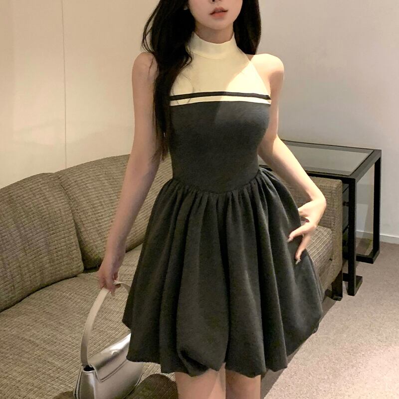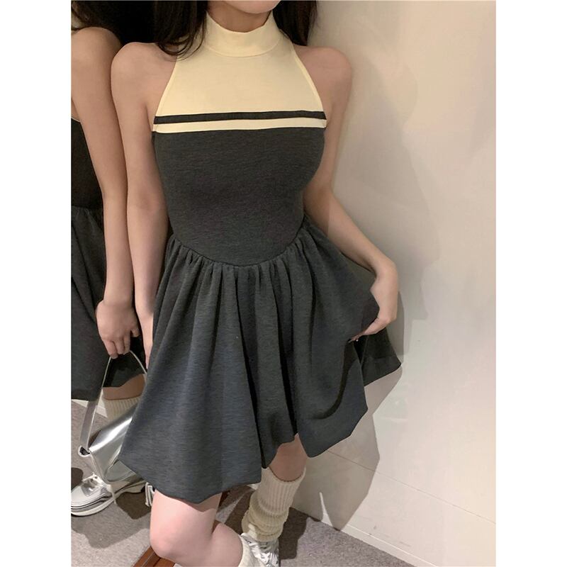 ワンピース 個性 ネオギャル Aライン ノースリーブ 切り替え 配色 グレー S M