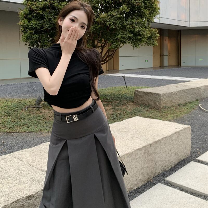セットアップ 個性 韓国系 デザイン感 OL/通勤 トップス+スカート ブラック+グレー S M L