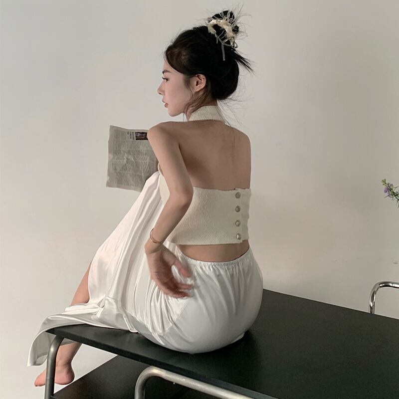 セットアップ セクシー 一目惚れ ホルターネック ベスト+スカート ベージュ ブラック S M