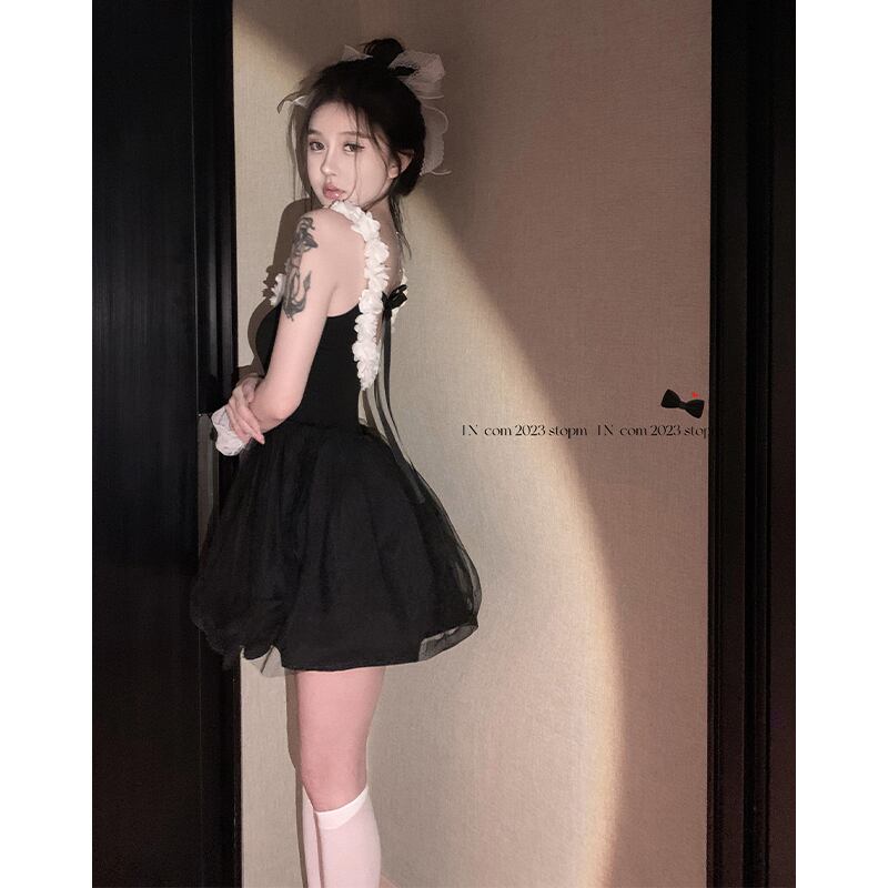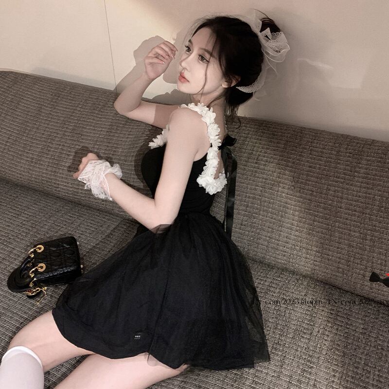 ワンピース ガーリー セクシー かわいい Aライン フラワー ブラック S M