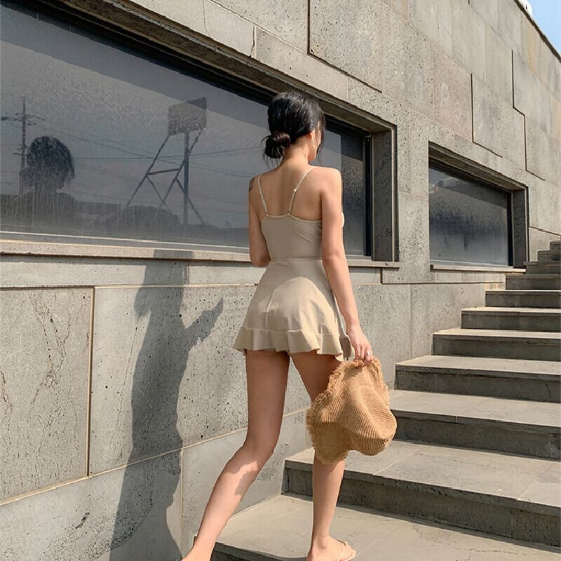 水着 温泉 ビーチ シンプル ペプラム ブラック ダークベージュ M L XL