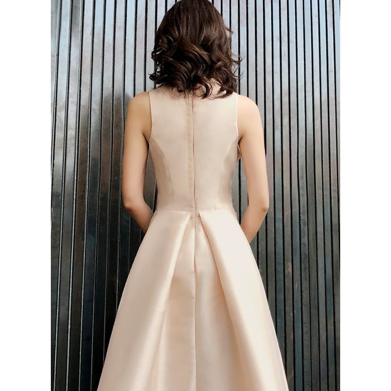 【Airi Styleシリーズ】パーティードレス 大振裾 ノースリーブ リボン 披露宴 スタンドネック シャンパン色 S M L XL 2XL