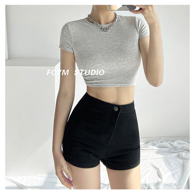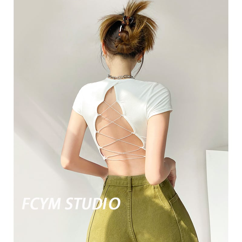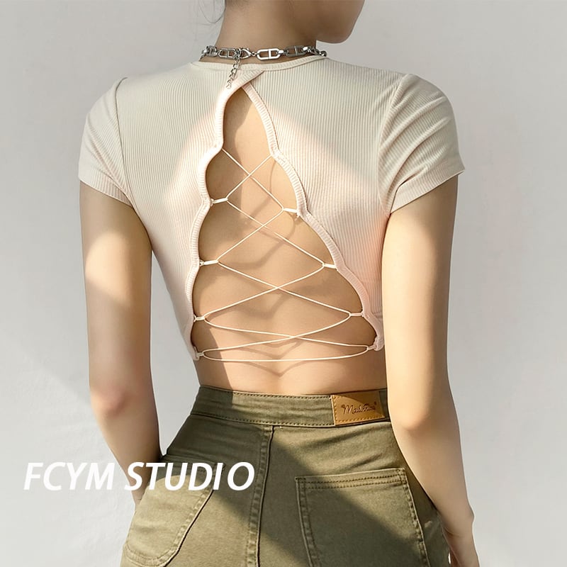 トップス Tシャツ セクシー 背見せ デザイン感 半袖 ブラック ホワイト グレー インディゴ ベージュ S M