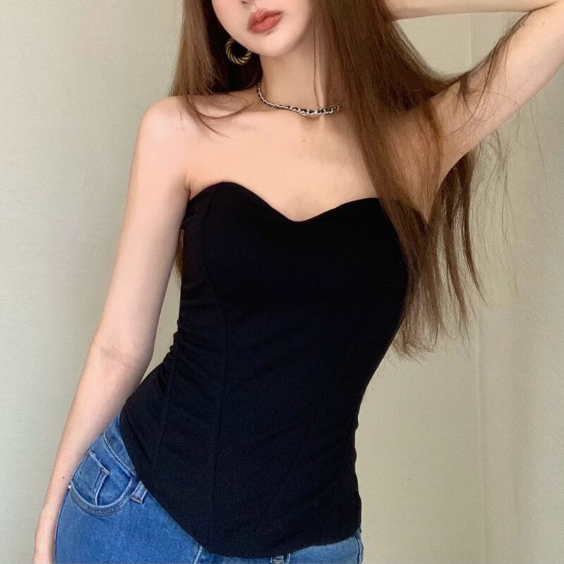 トップス ベスト セクシー 無地 チューブトップ ブラック S M