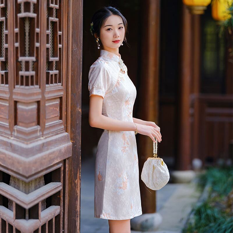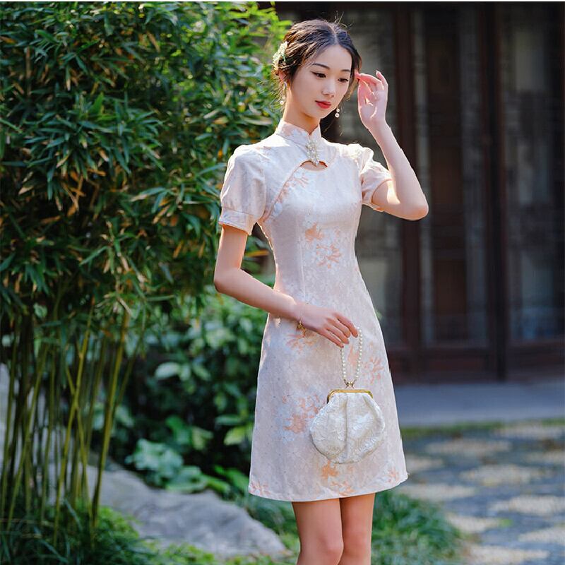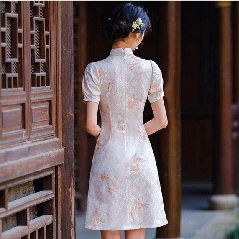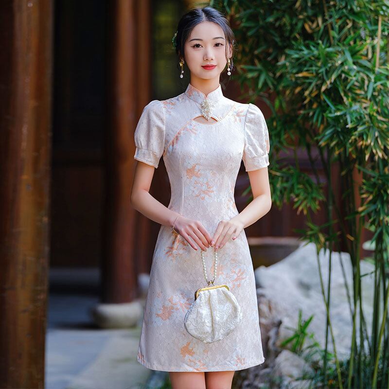 【花田シリーズ】改良型チャイナドレス レース パフスリーブ スウィート S M L XL 2XL