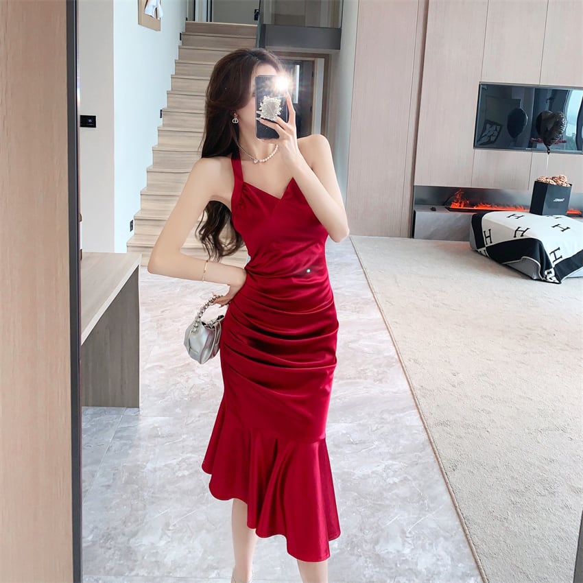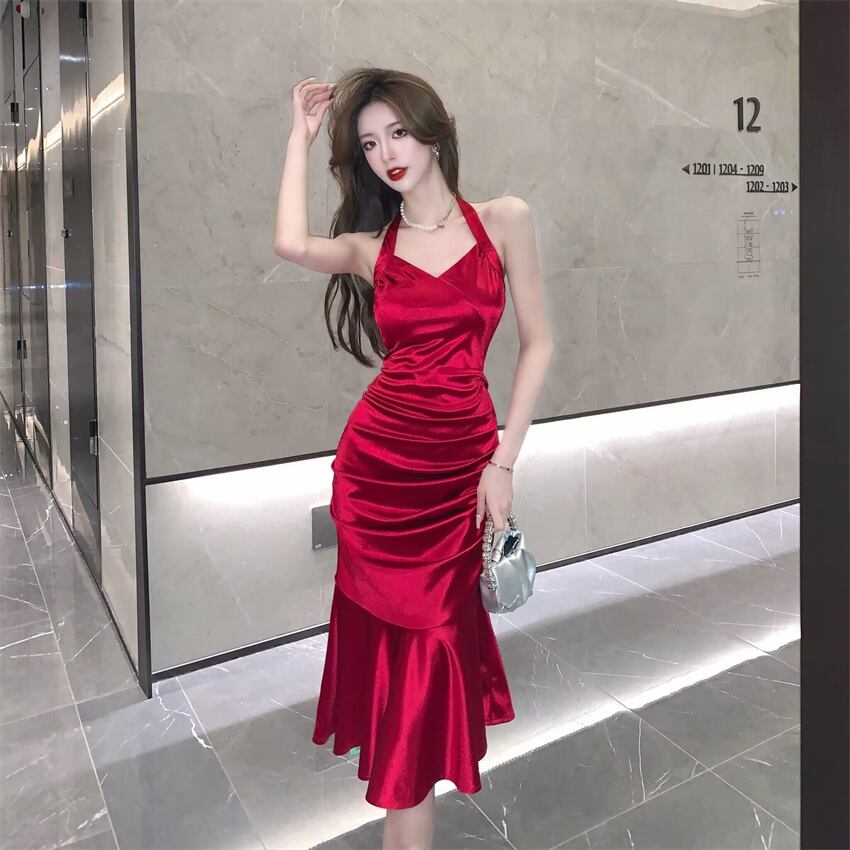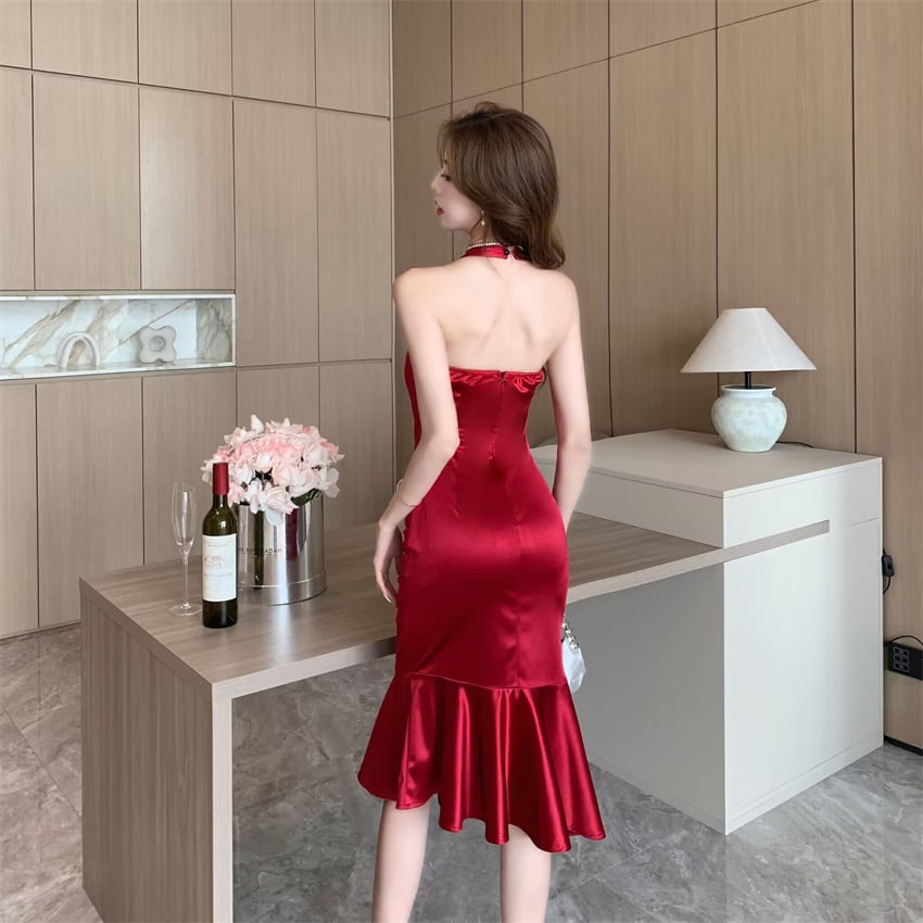 【CHERRYシリーズ】ワンピース フィッシュテール 綺麗め セクシー ワインレッド S M L