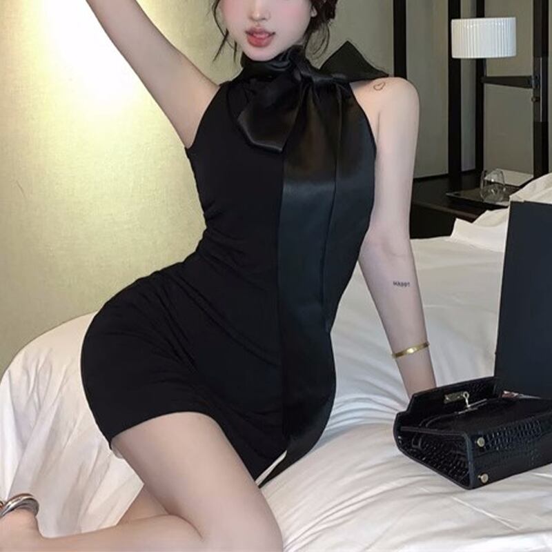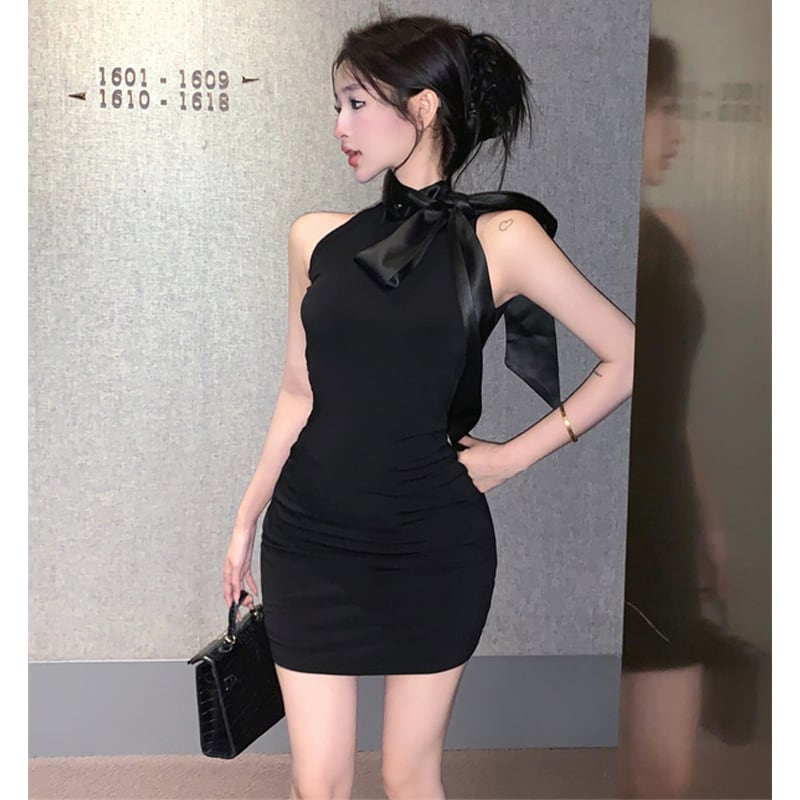 ワンピース セクシー かわいい ノースリーブ ボウタイ ブラック XS S M L XL