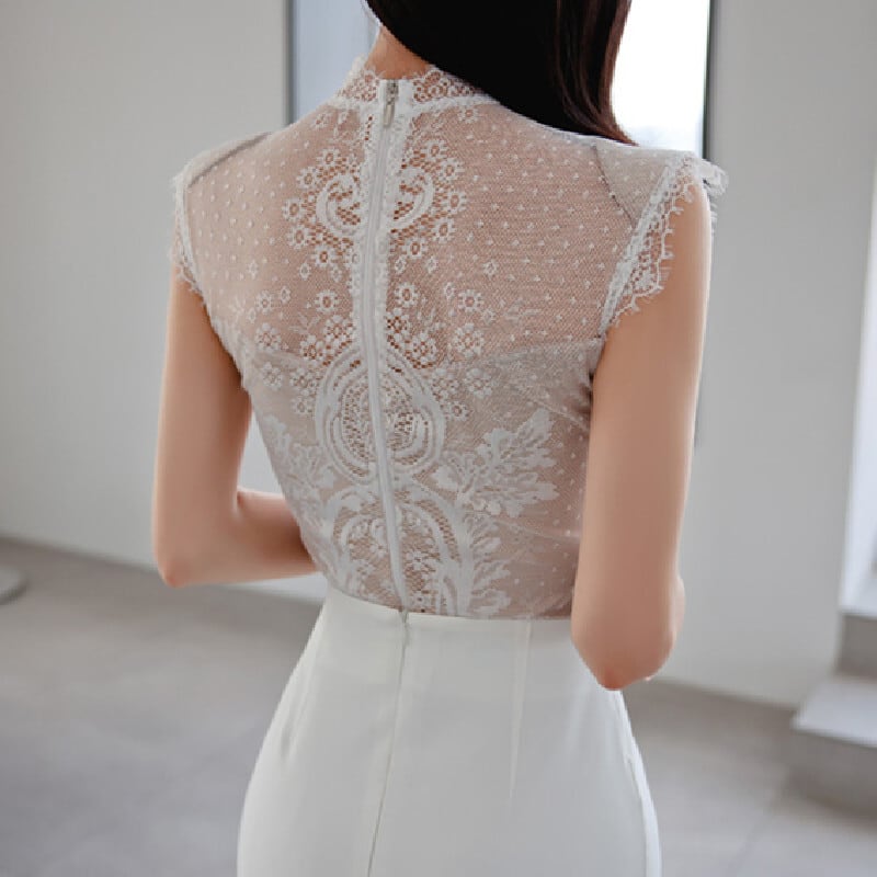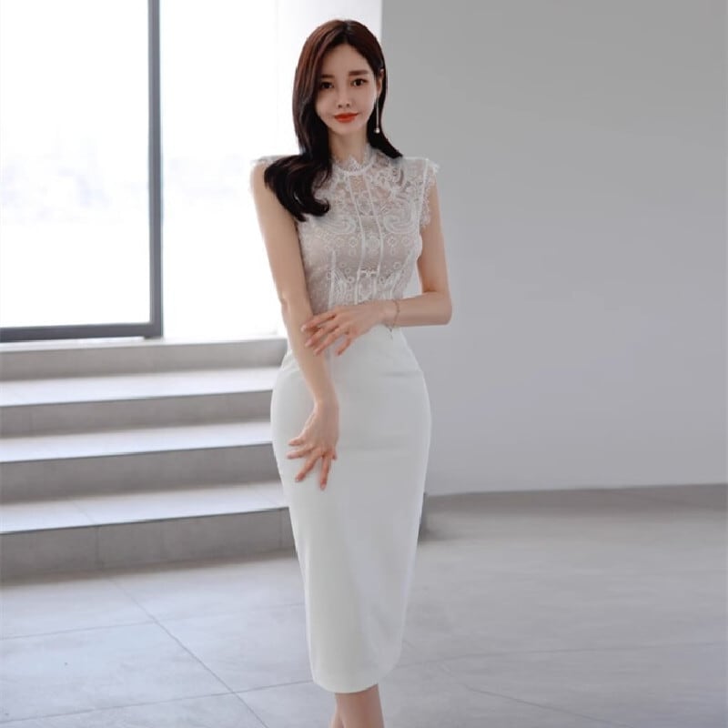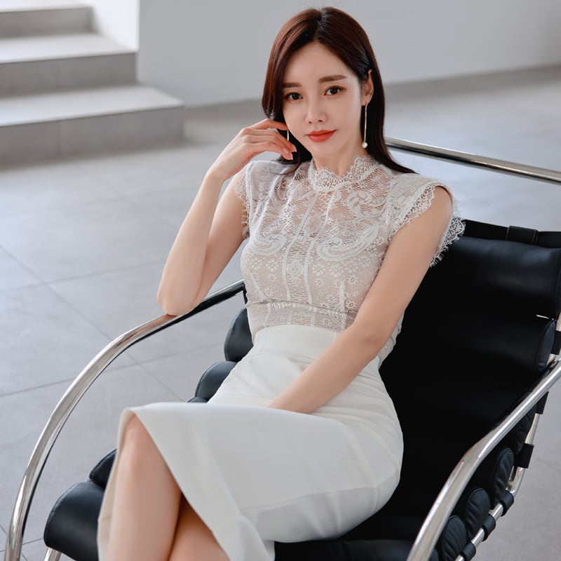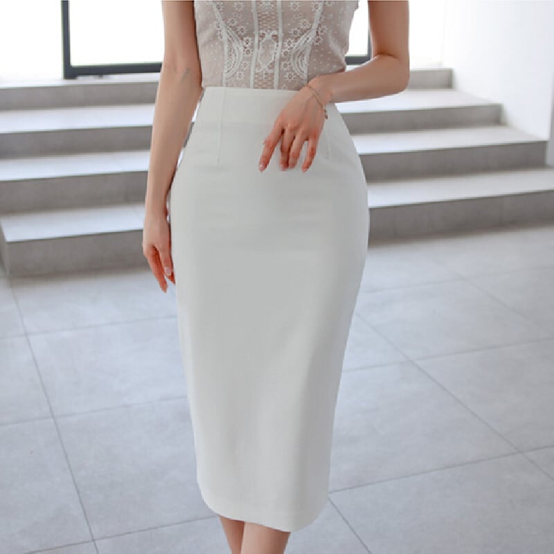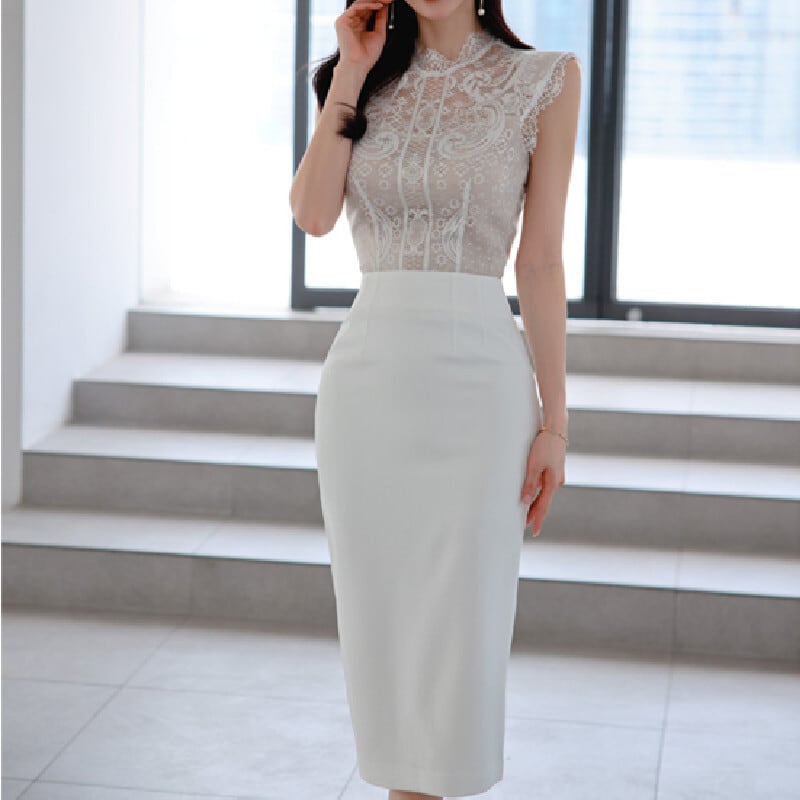 セットアップ トップス+スカート 白 レース エレガント 無地 ホワイト S M L XL