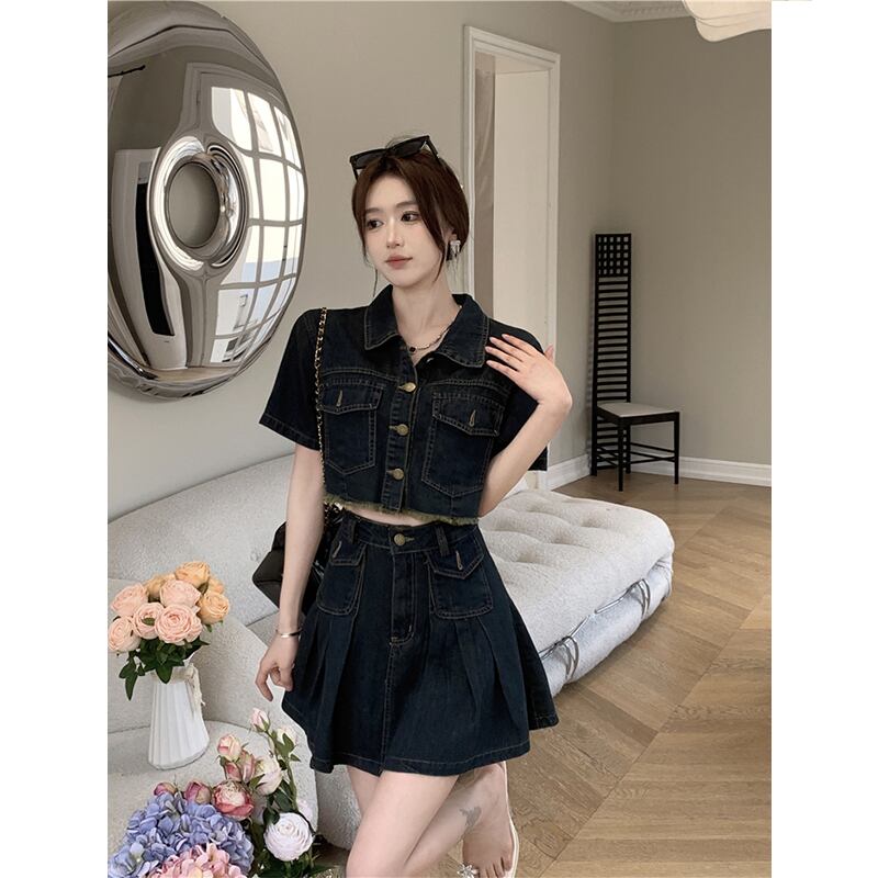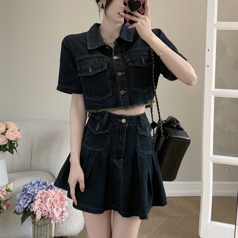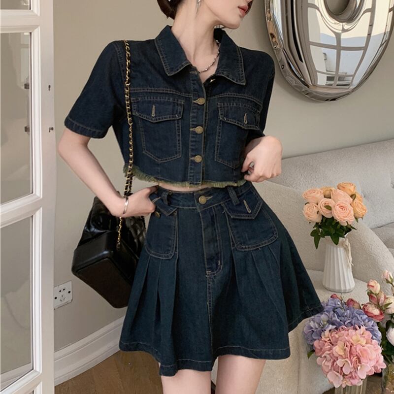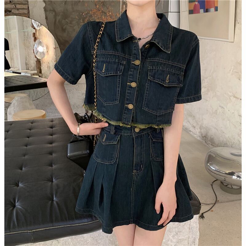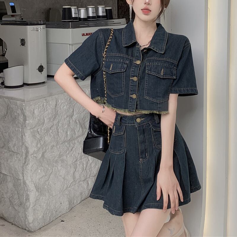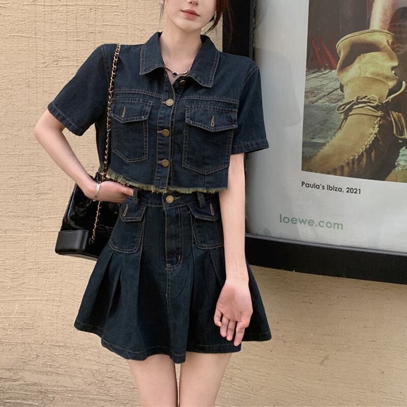 セットアップ 韓国系 個性 OL/通勤 カジュアル デニム アウター+スカート S M L XL