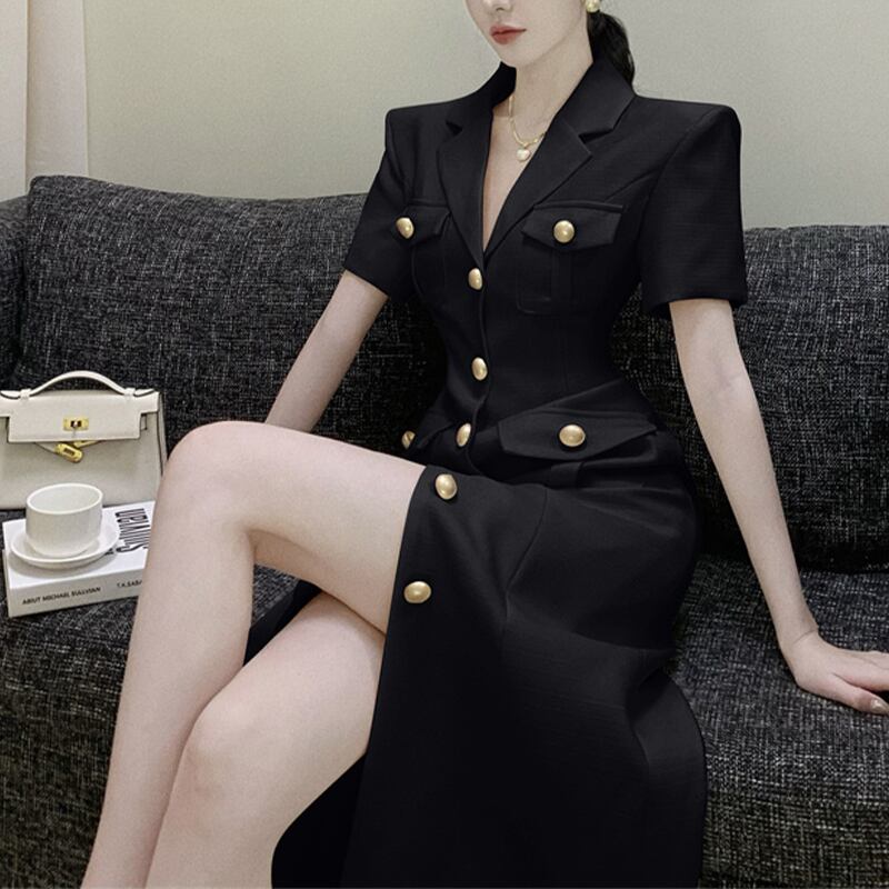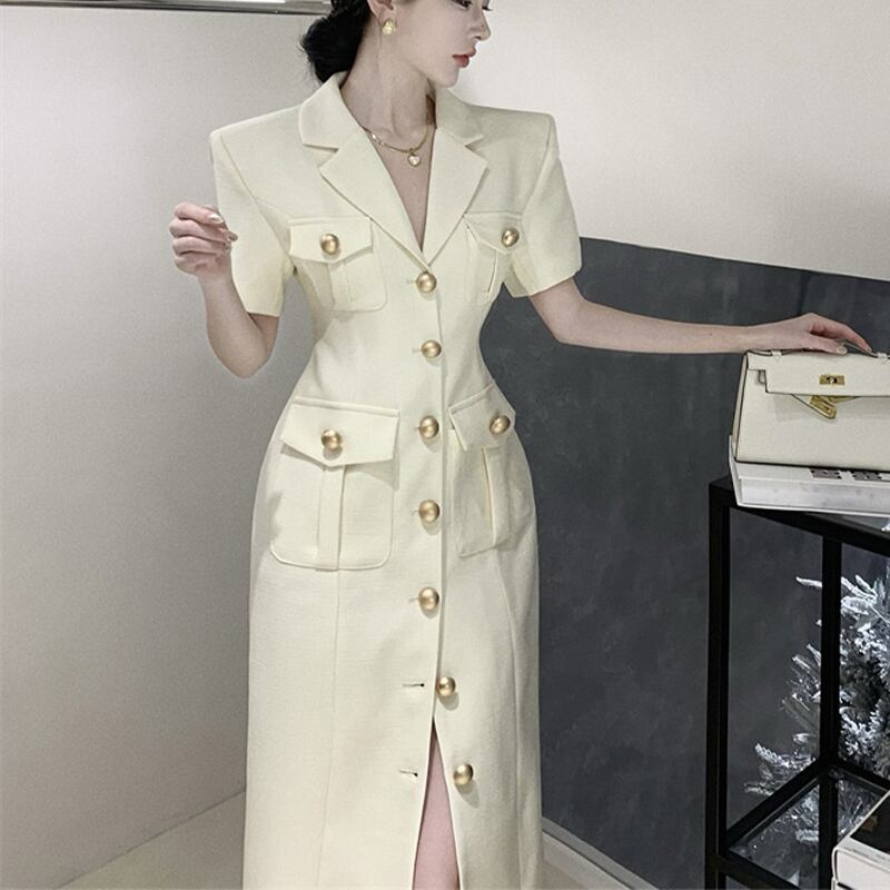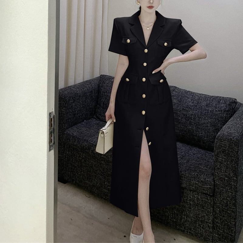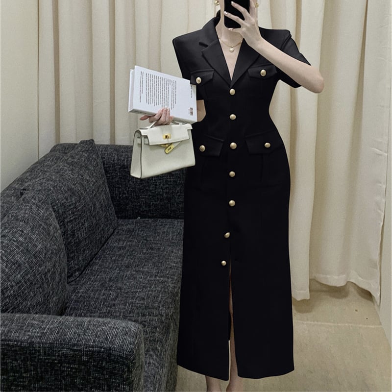 ワンピース Vネック OL/通勤 ロング丈 ベージュ ブラック S M L