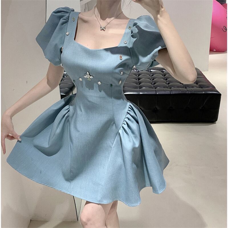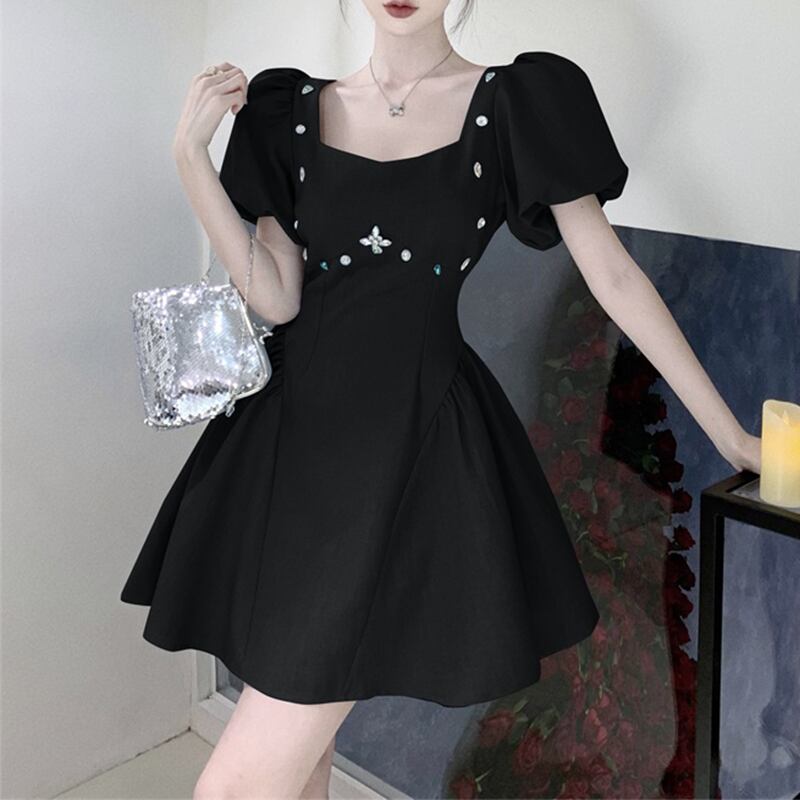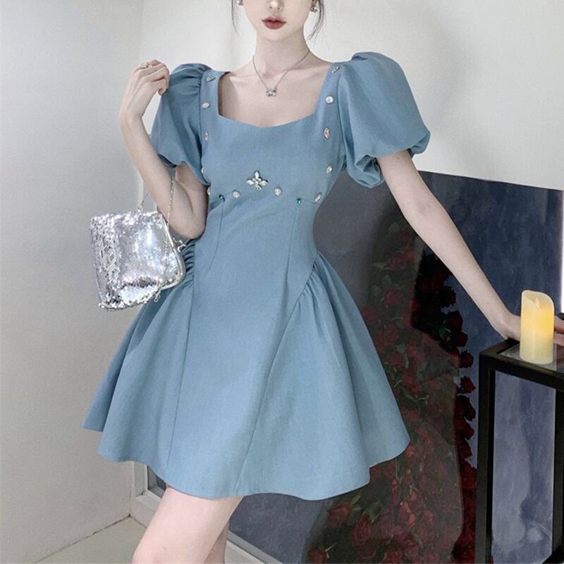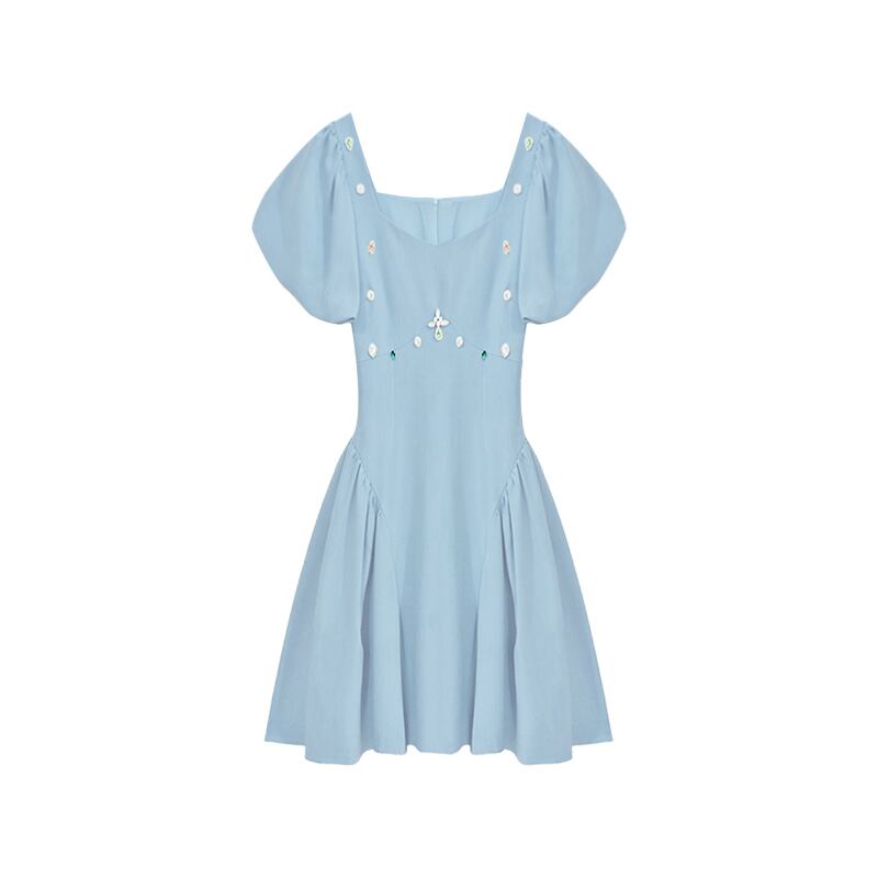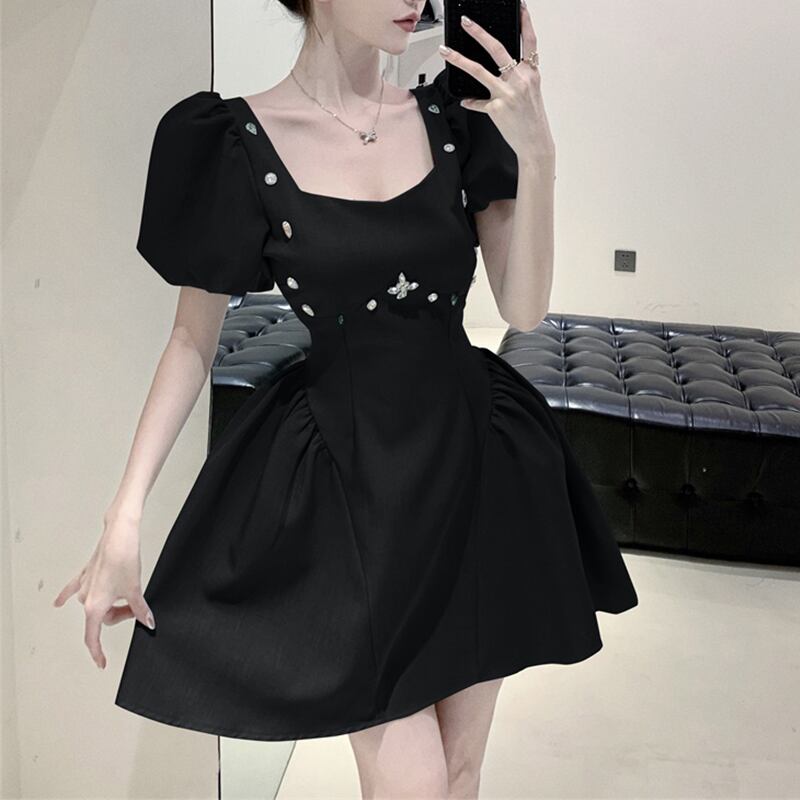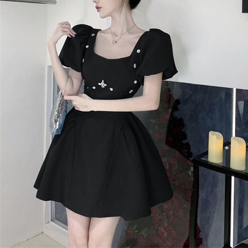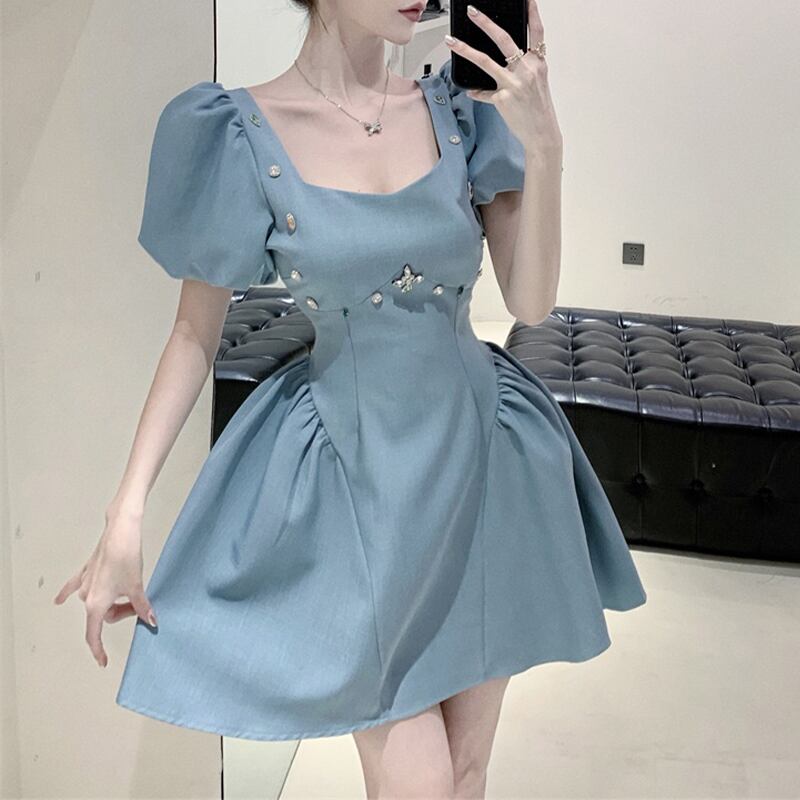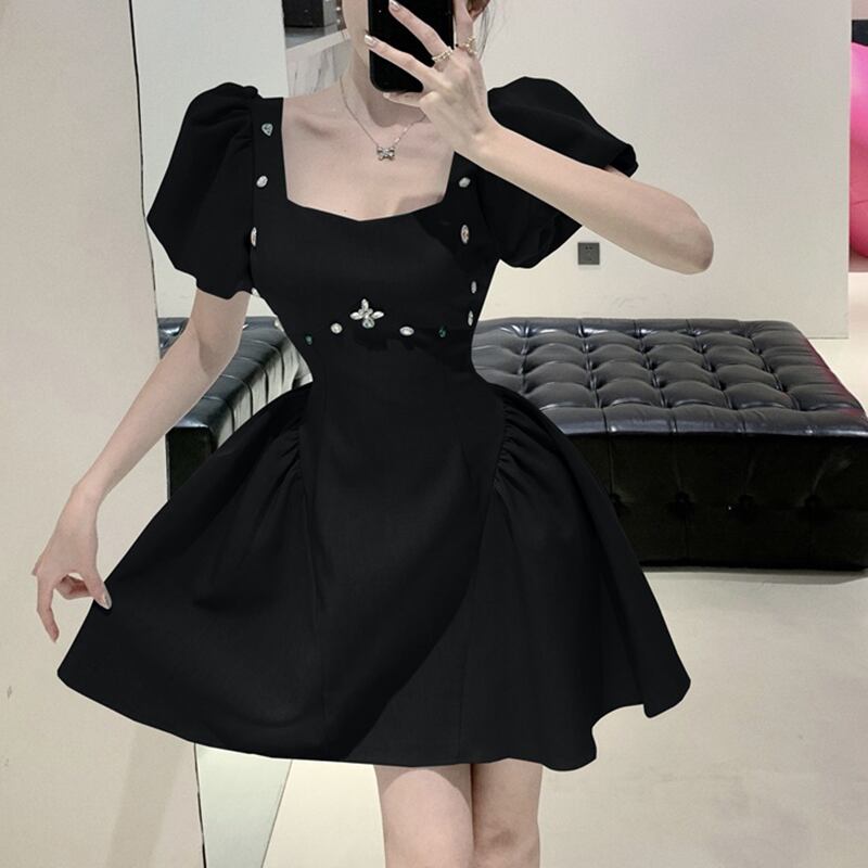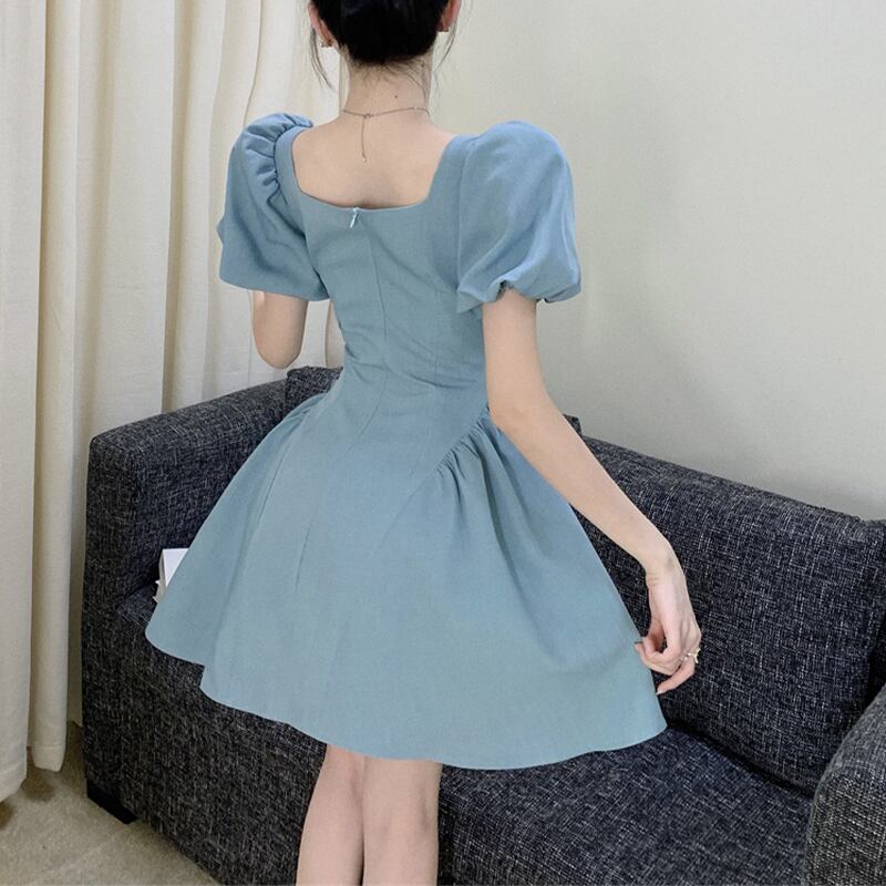 ワンピース 海外トレンド OL/通勤 スクエアネック Aライン ブラック ブルー S M L
