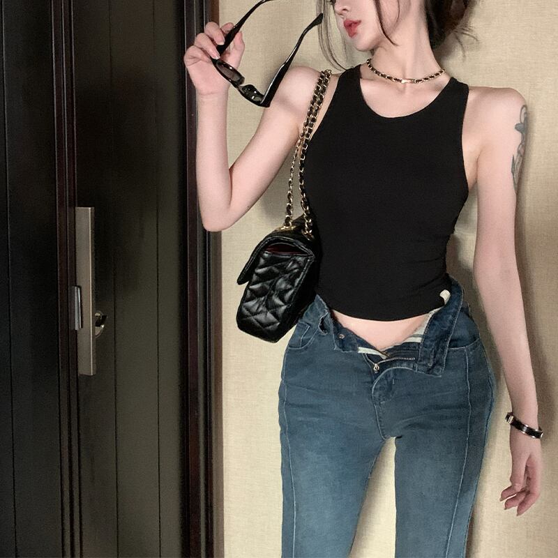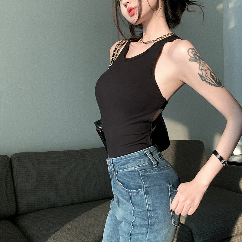 トップス パッド付き ベスト セクシー 背見せ 無地 個性 デザイン感 ブラック ホワイト