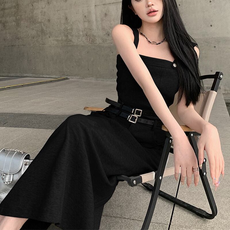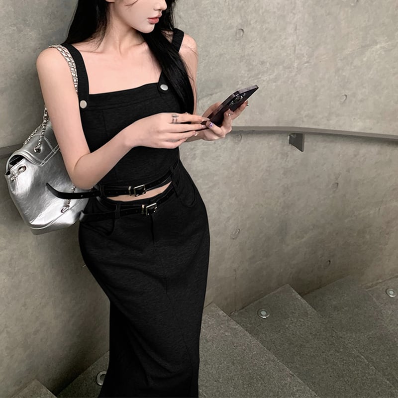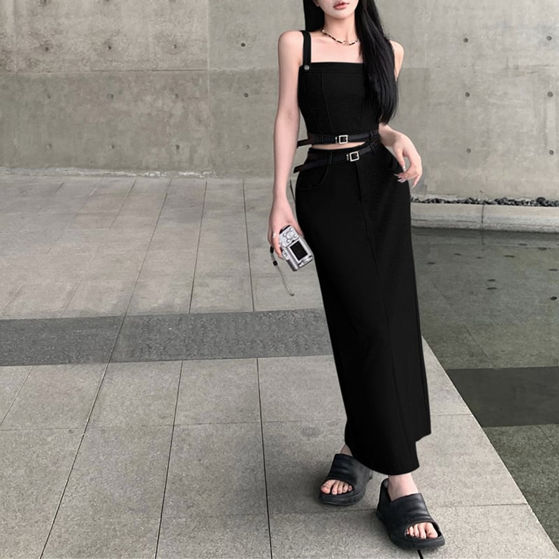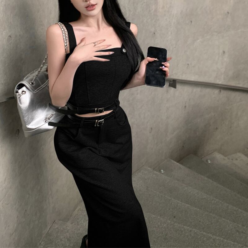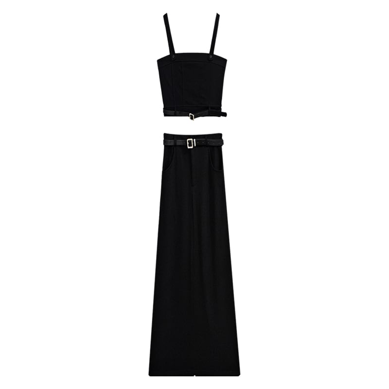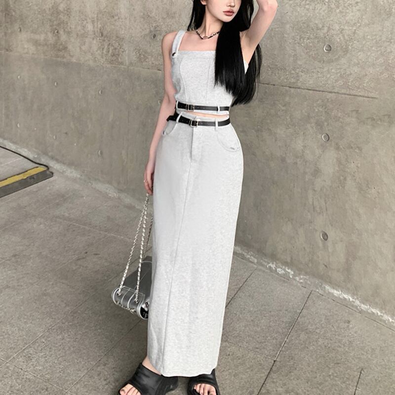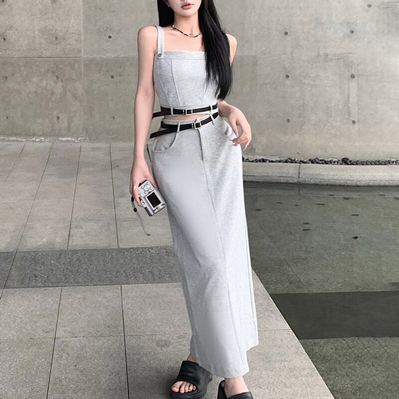 セットアップ ベルト付き OL/通勤 韓国系 個性 トップス+スカート グレー ブラック S M
