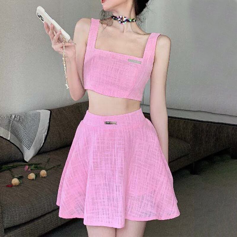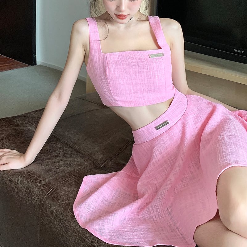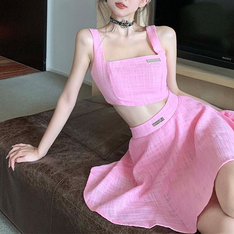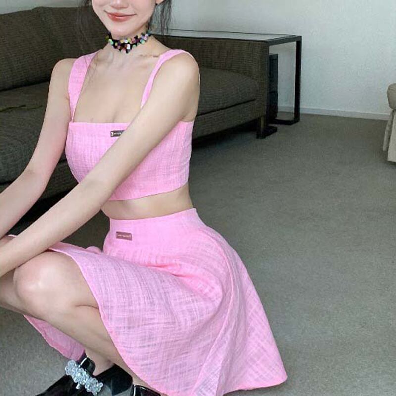 セットアップ セクシー 個性 デザイン感 スクエアネック ファスナー トップス+スカート ピンク S M L