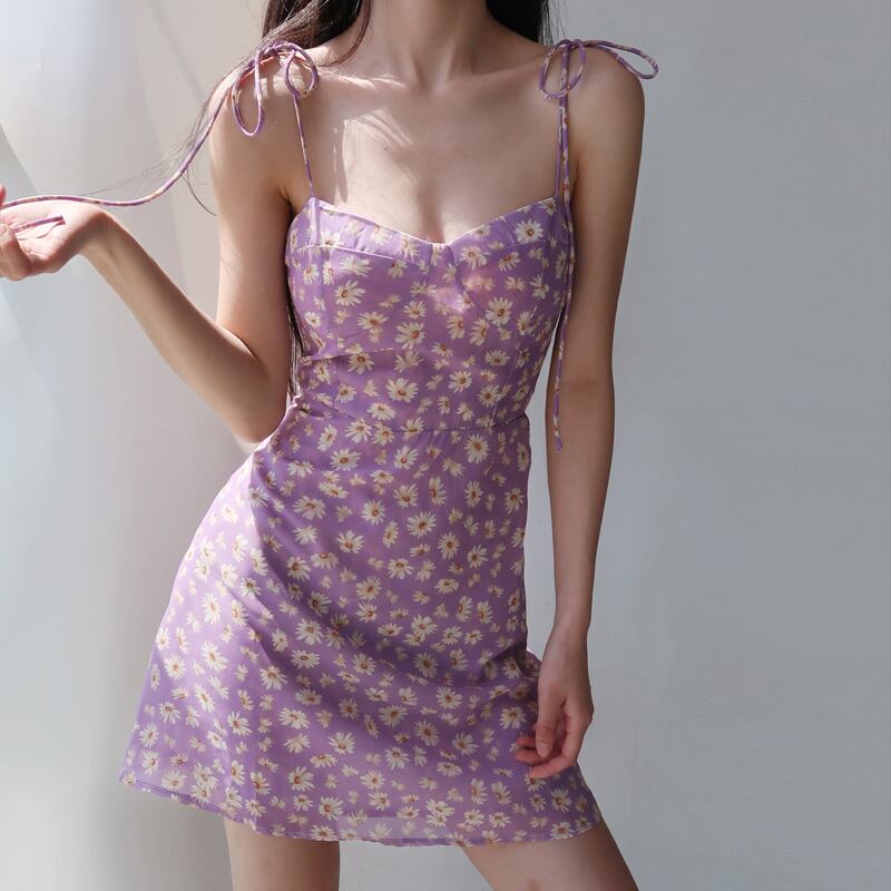 【French Romanceシリーズ】ワンピース セクシー フランス風 花柄 吊りワンピース パープル S M L