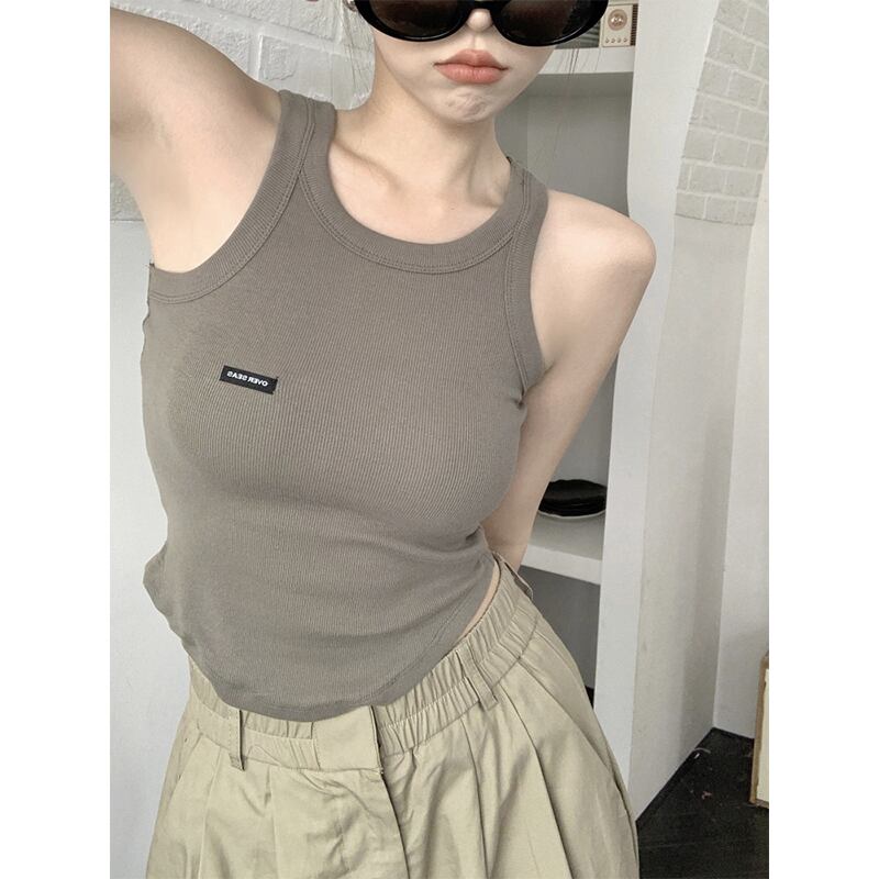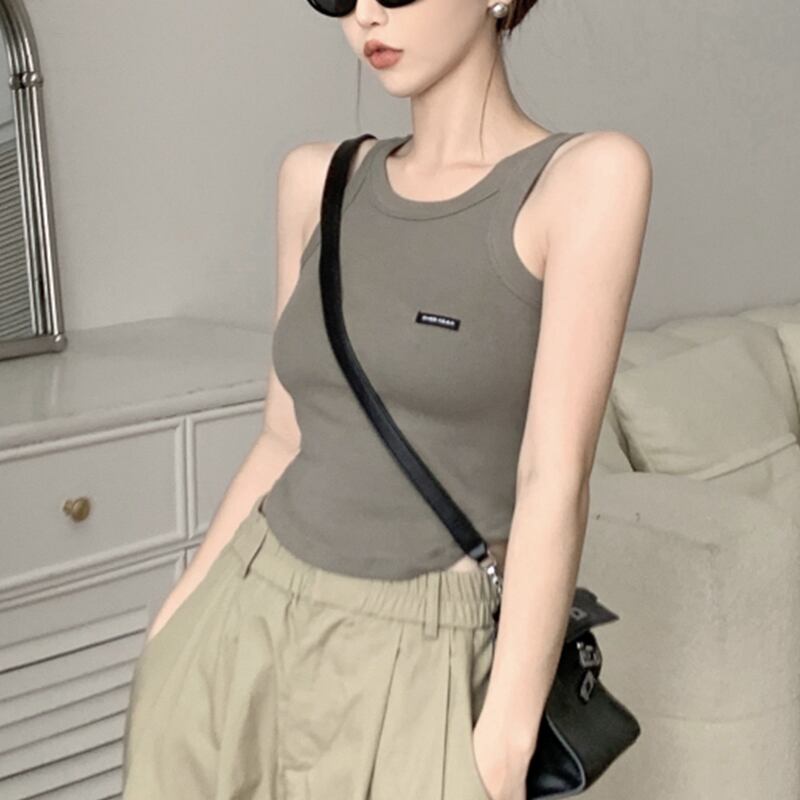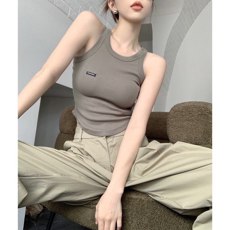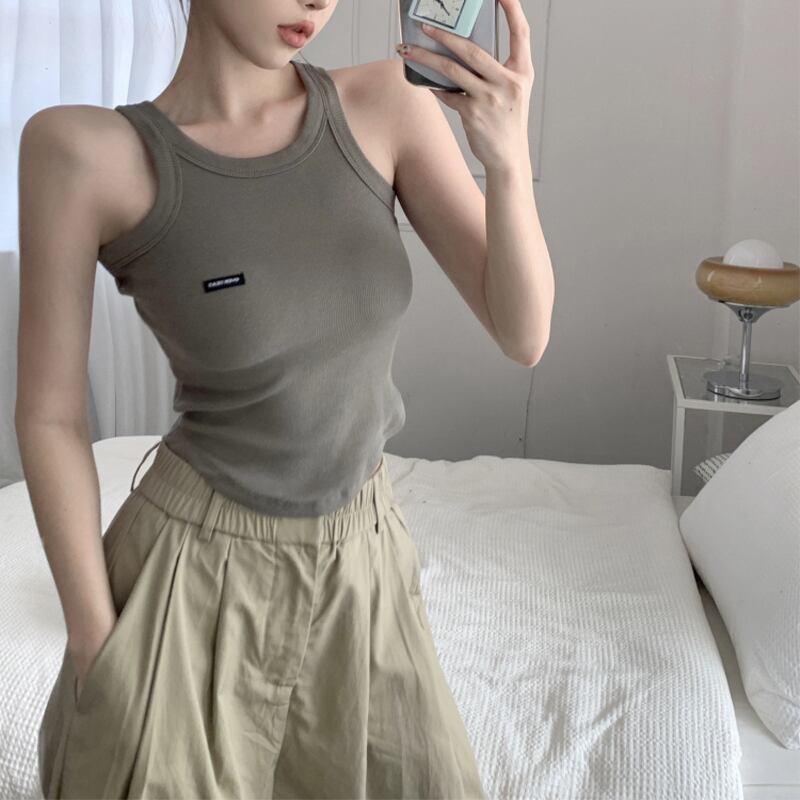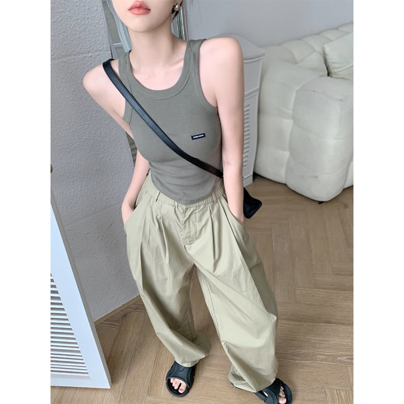 トップス タンクトップ 今季注目 シンプル 無地 ダークグリーン