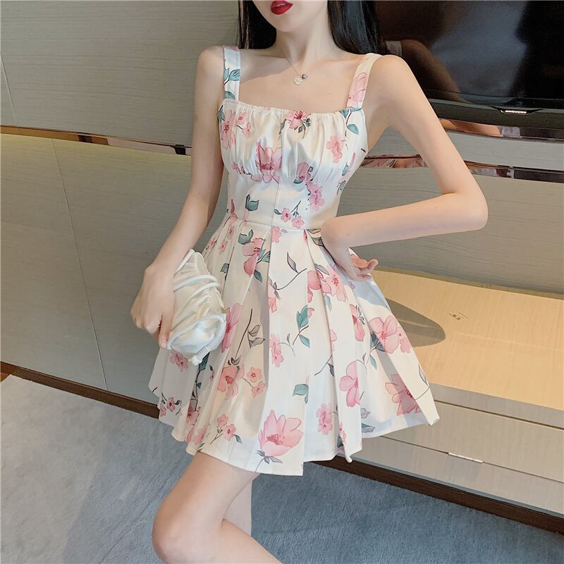 ワンピース スウィート 花柄 スクエアネック おしゃれな可愛い風 S M L