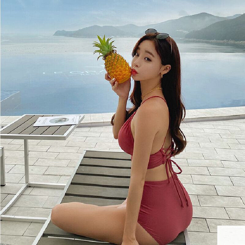 水着 ビキニ 2色展開 バックリボン 無地 ホワイト レッド M L XL
