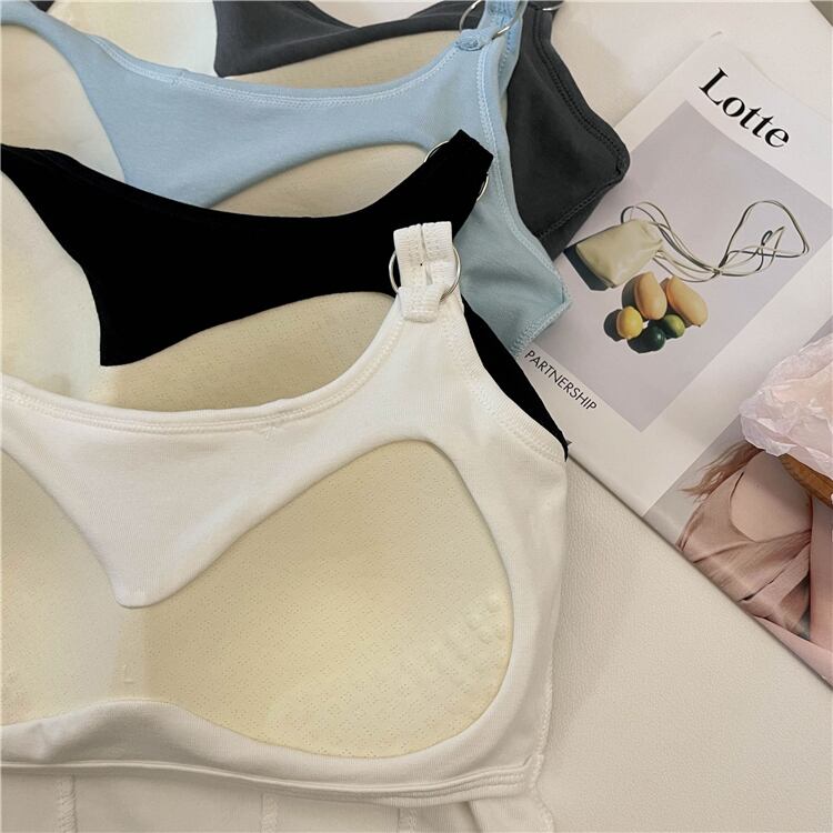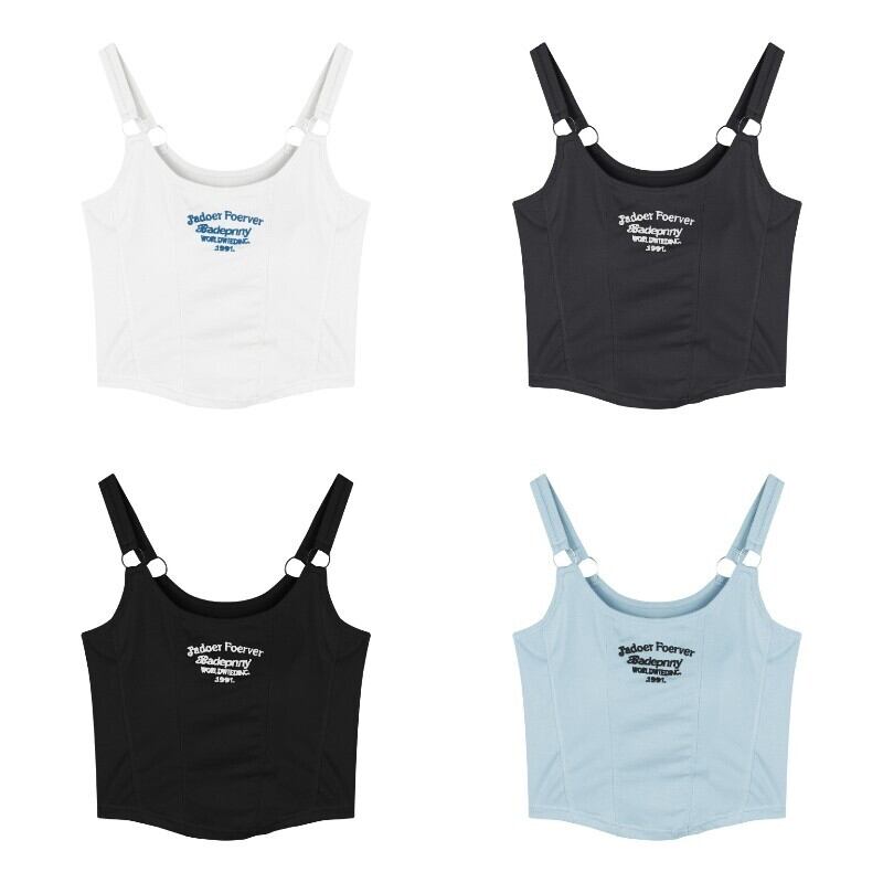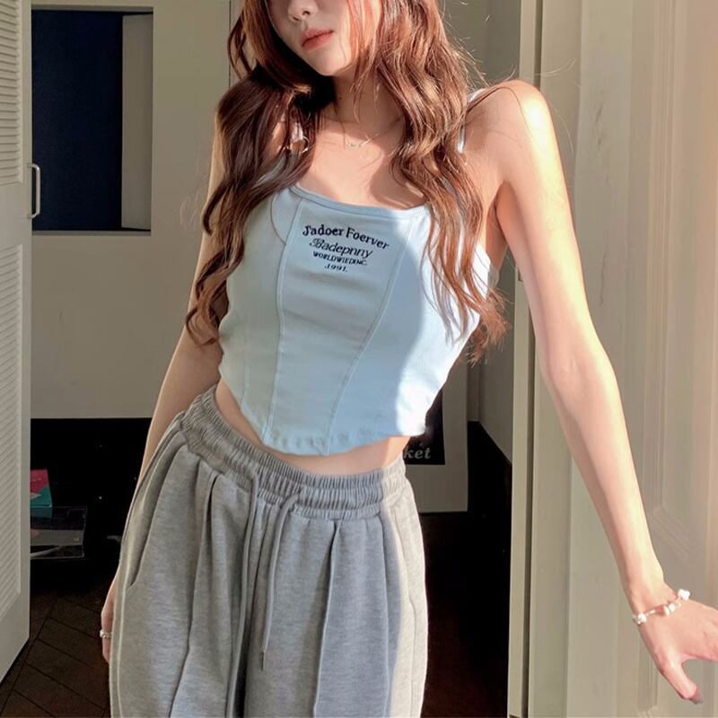 トップス キャミソール パット付き 個性 アルファベット ホワイト ブラック ブルー ネイビー