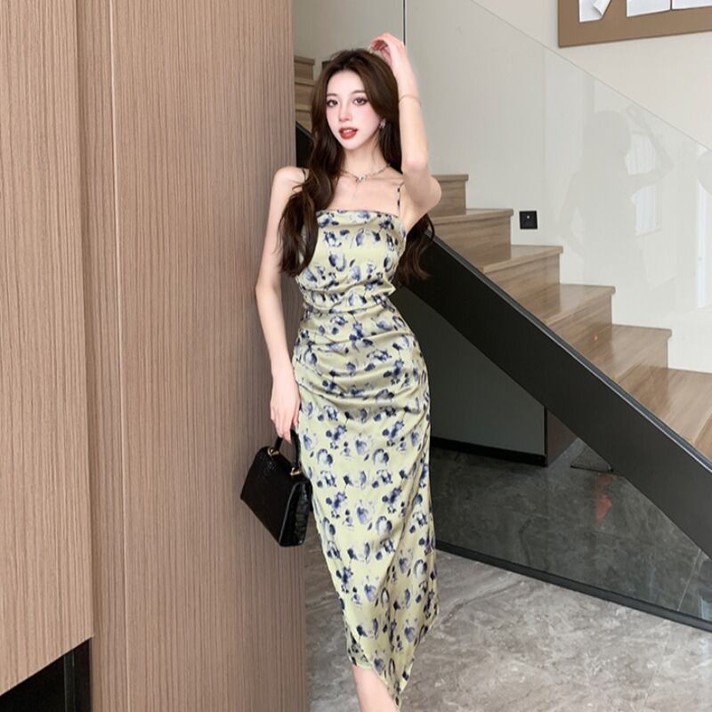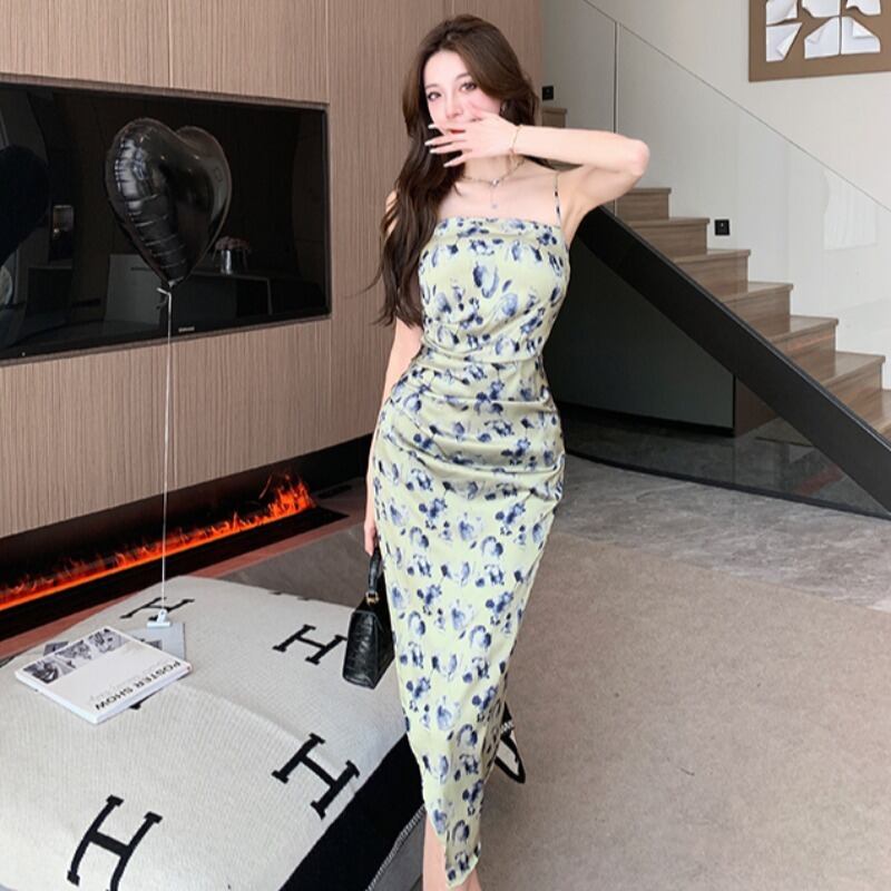 【CHERRYシリーズ】ワンピース プリント 綺麗め 花柄 吊りワンピース S M L