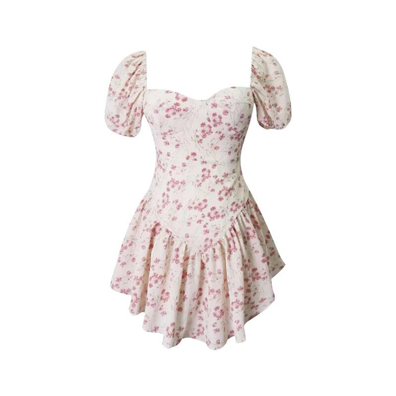 水着 パフスリーブ 花柄 水泳 スウィート ピンク S M L XL