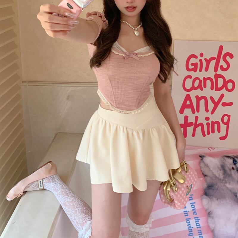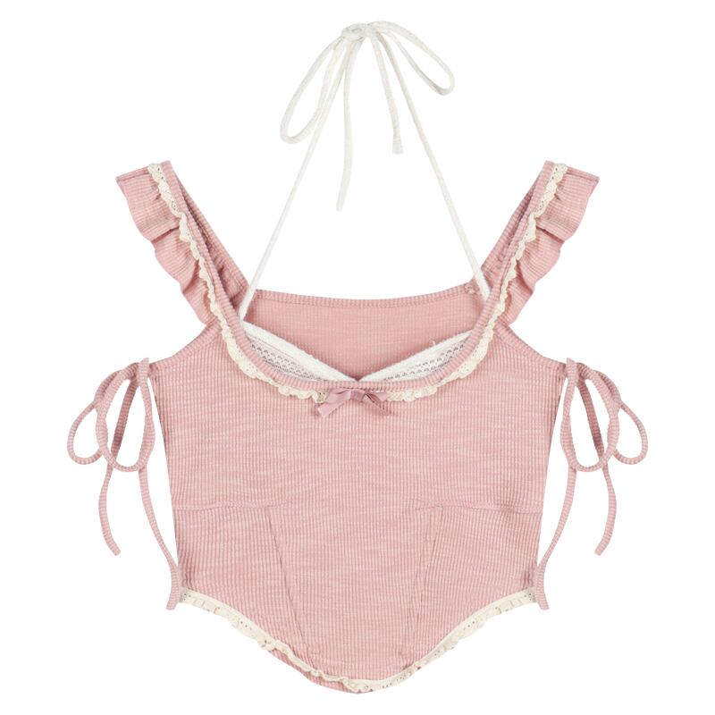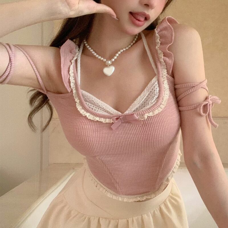 トップス セクシー かわいい パプラム 切り替え ニット ピンク