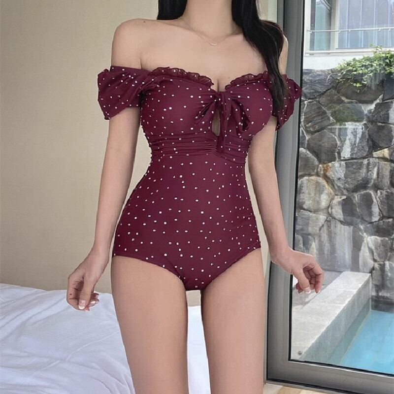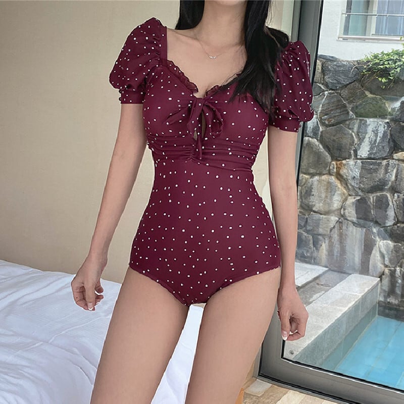 水着 パフスリーブ ドット柄 温泉 水玉模様 今季注目 M L XL