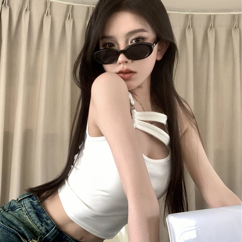 トップス タンクトップ シンプル 個性 デザイン感 ノースリーブ ブラック ホワイト