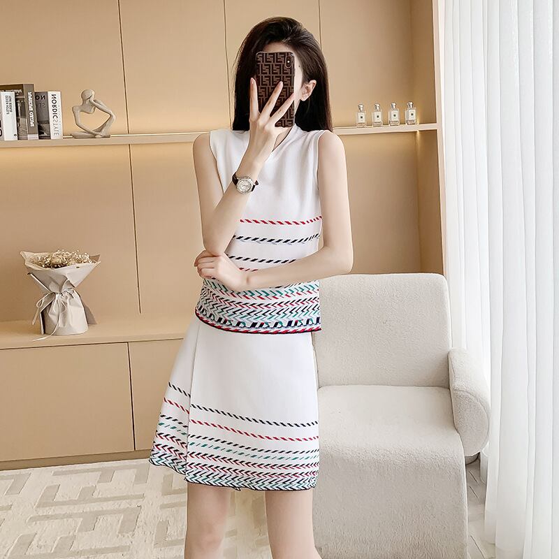 【森森家シリーズ】セットアップ トップス+スカート ニット ノースリーブ フェミニン S M L XL