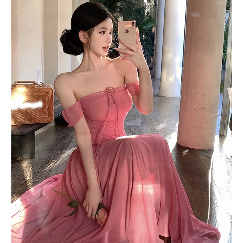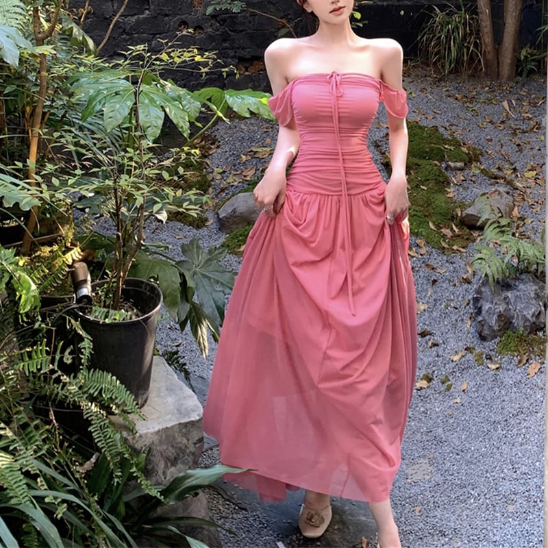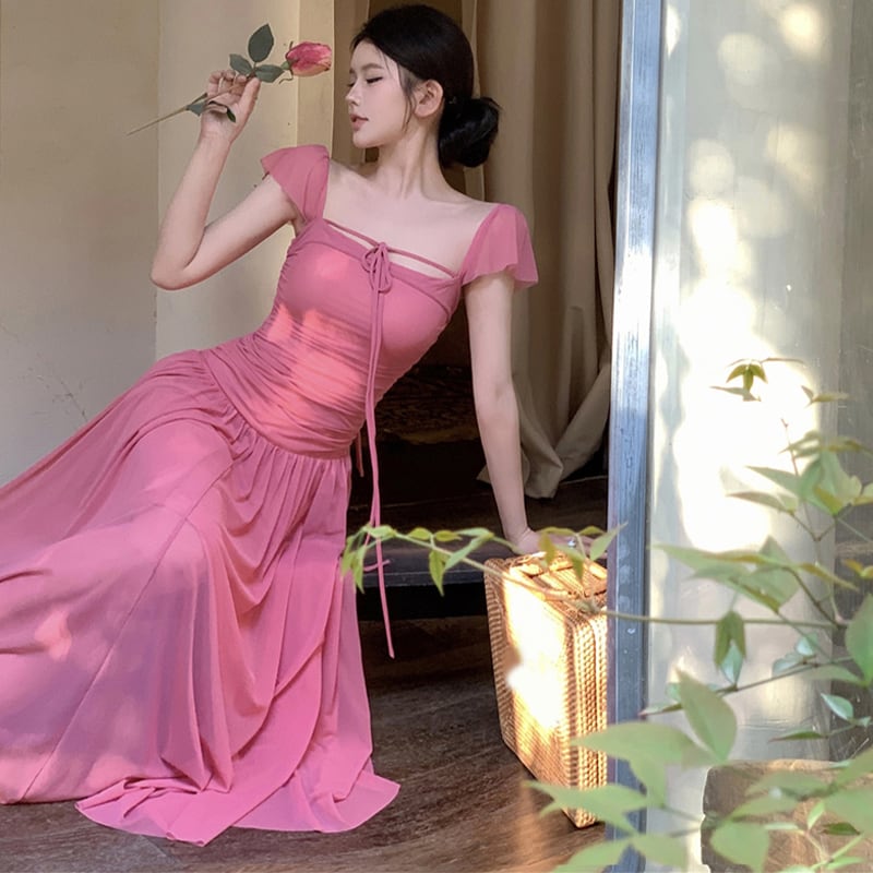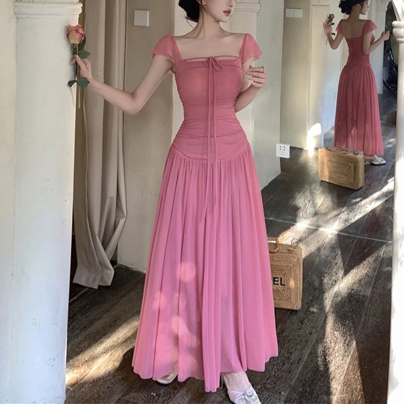 ワンピース 美しいロマンチックな雰囲気 レトロ フランス風 ロング丈 ピンク S M L