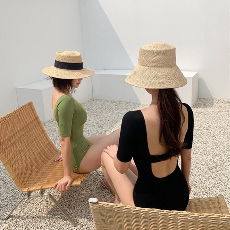 水着 上品らしく シンプル 半袖 グリーン ブラック M L XL
