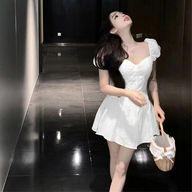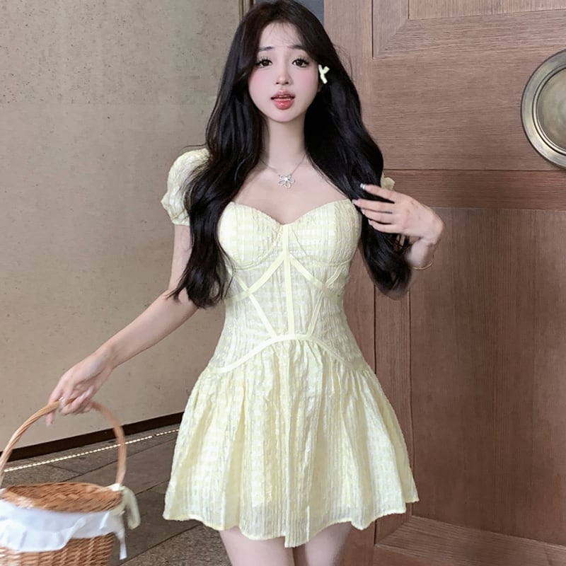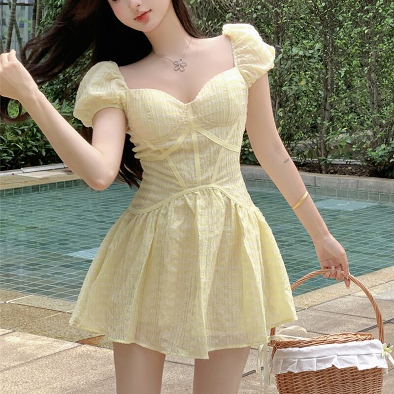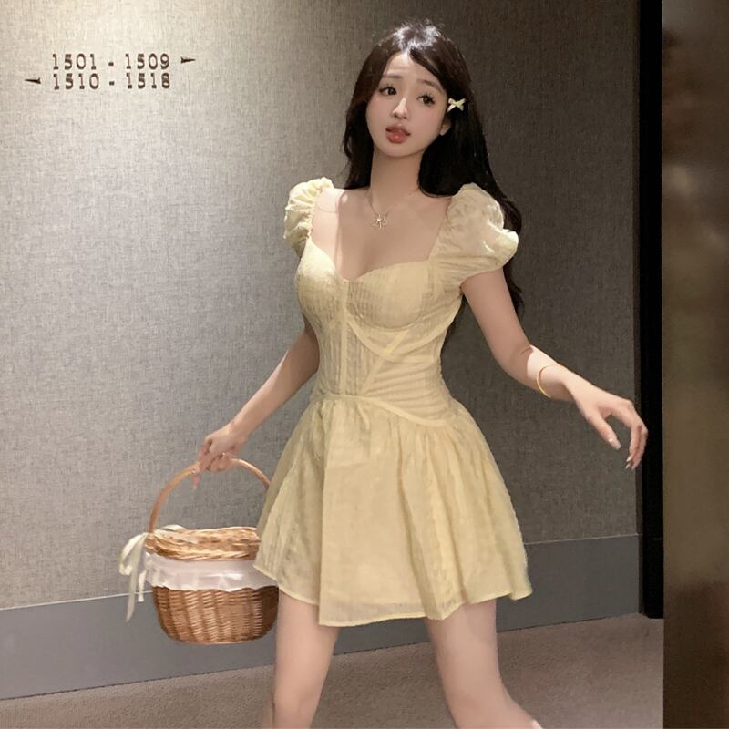ワンピース セクシー スウィート 無地 Aライン イエロー ブラック ホワイト S M L