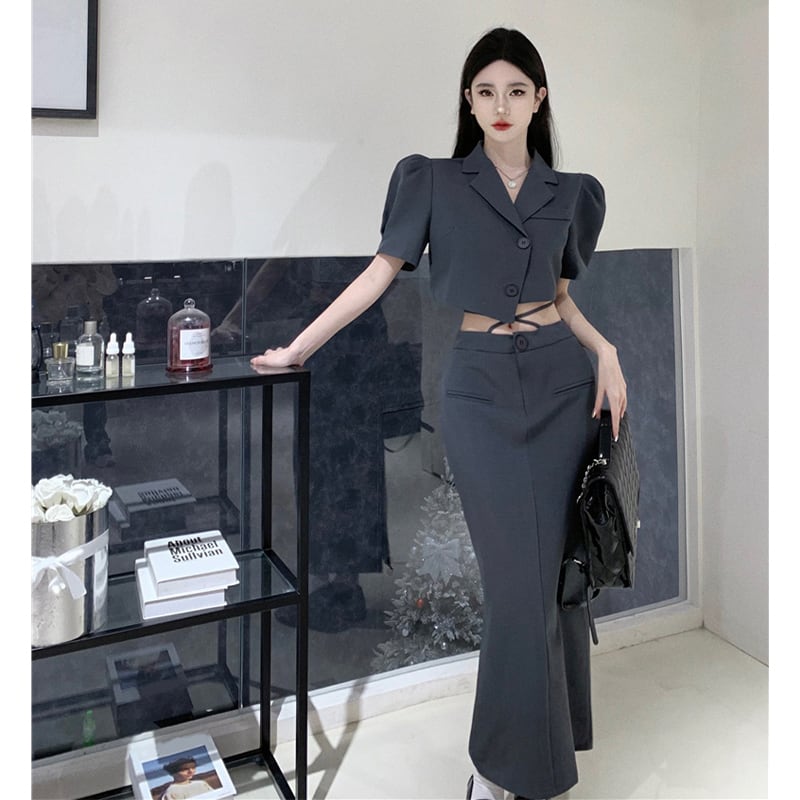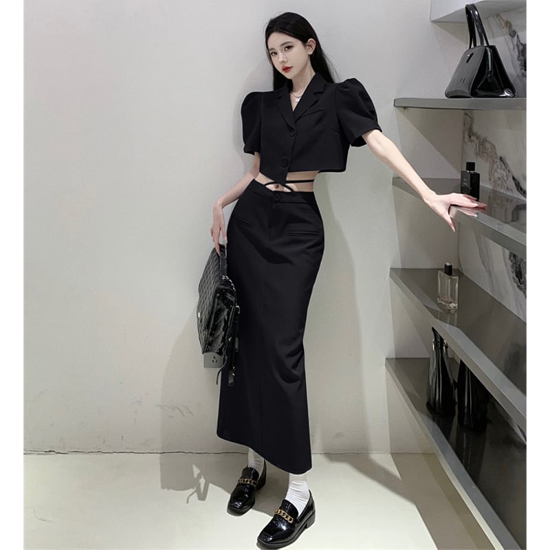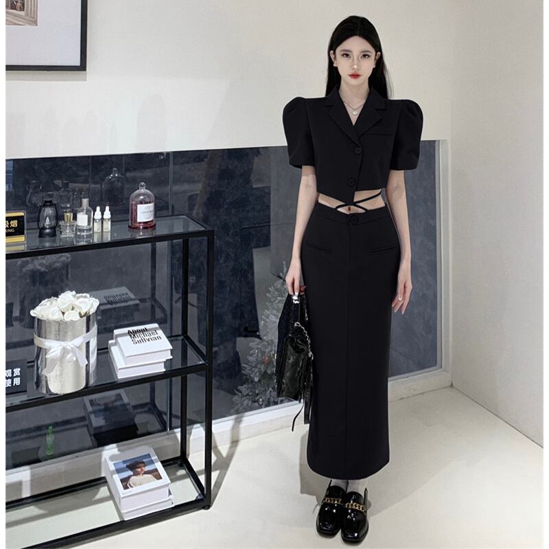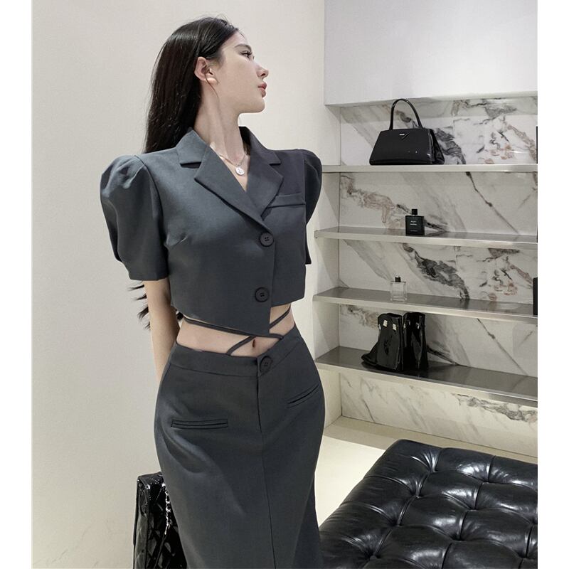 セットアップ 抜群感強い 韓国系 個性 不規則 トップス+スカート ブラック グレー S M L