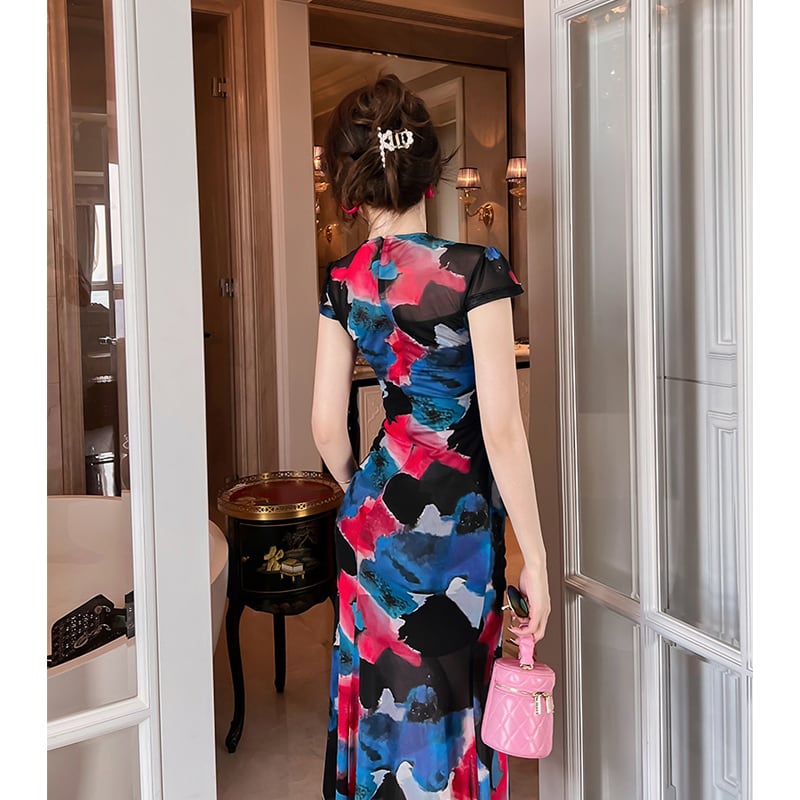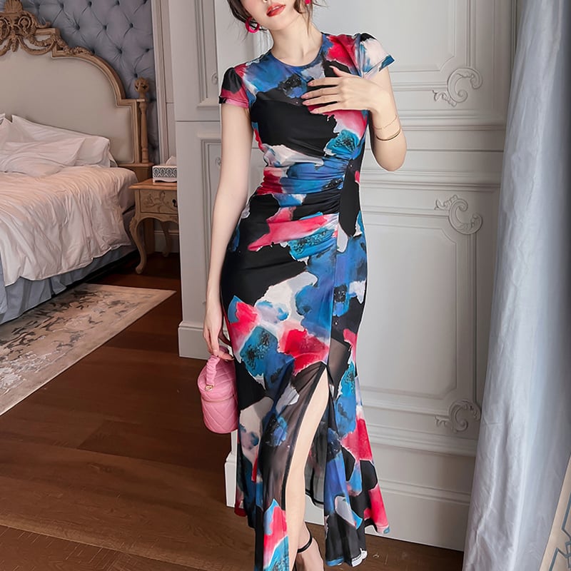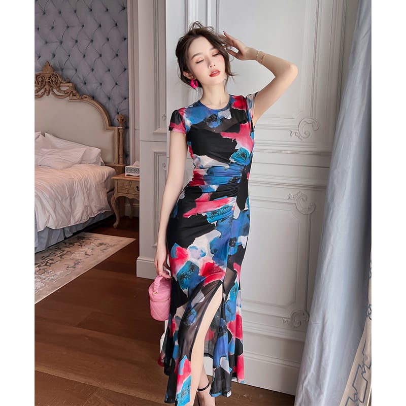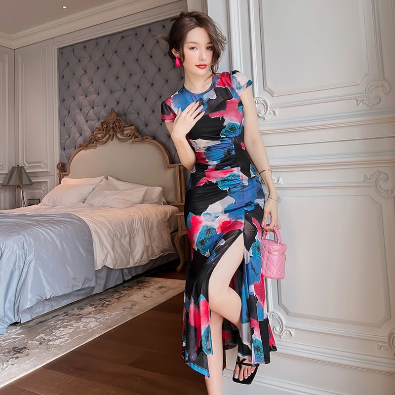 【夕暮薔薇シリーズ】ワンピース 気質UP 優しい 花柄 サイドスリット S M L XL