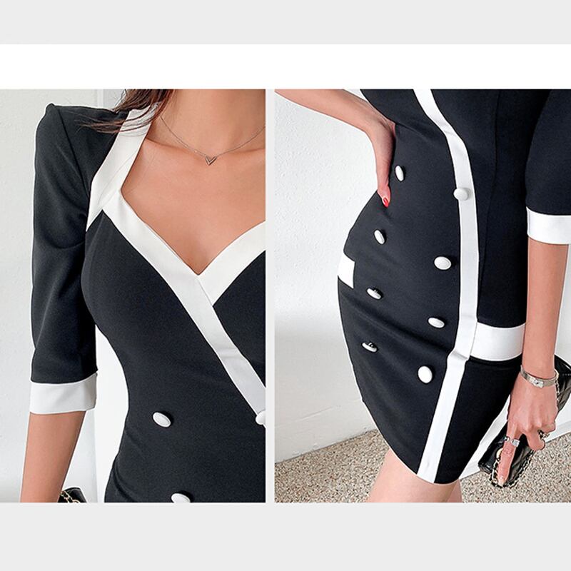 【Fan Styleシリーズ】ワンピース 韓国系 セクシー OL/通勤 7分袖 ブラック+ホワイト 大きいサイズ L XL 2XL 3XL 4XL