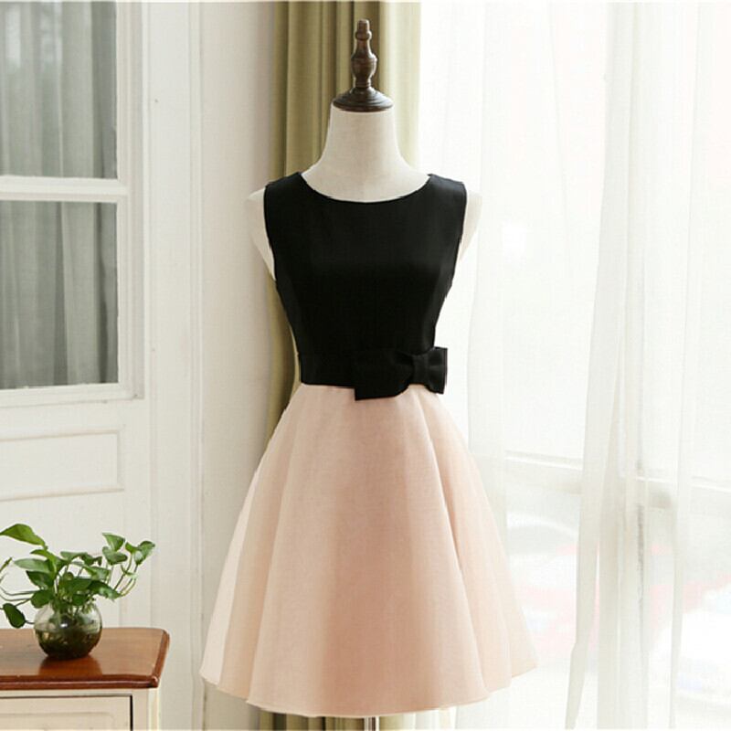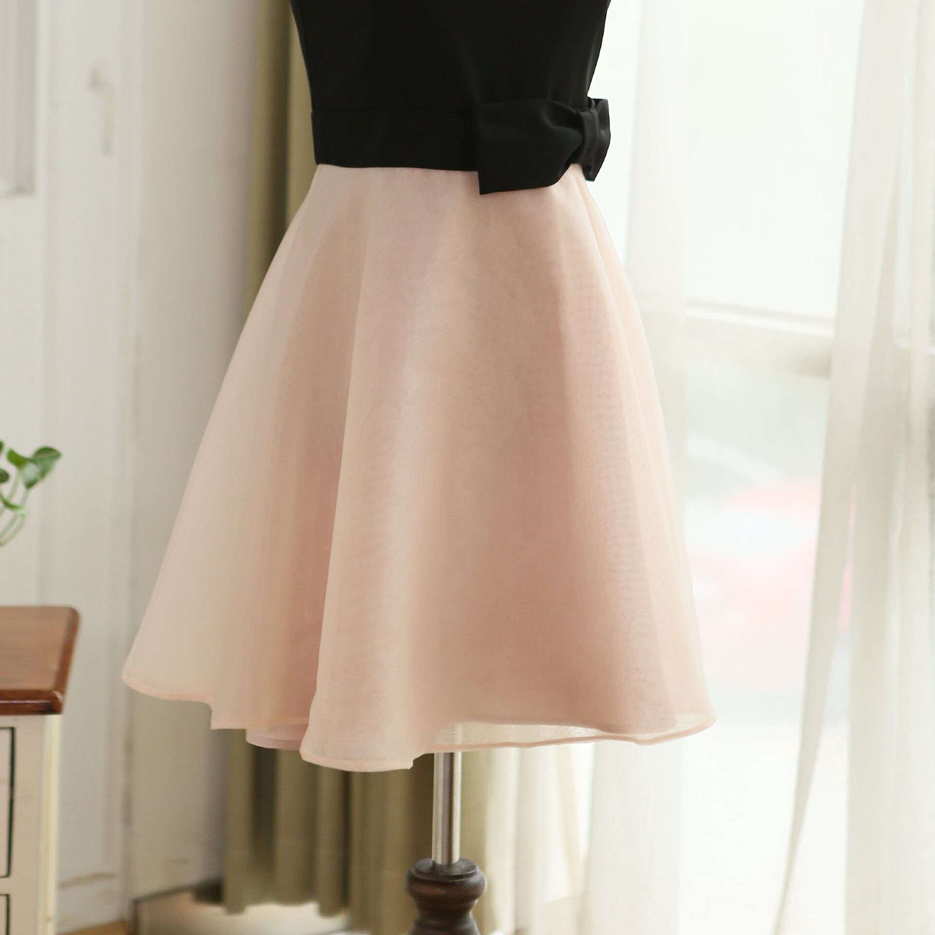 【Sunflowerシリーズ】ワンピース パーティー ラウンドネック 配色 スウィート S M L