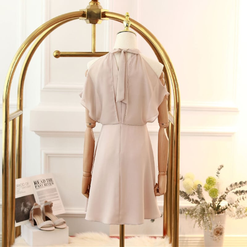 【Sunflowerシリーズ】ワンピース オフショルダー バックリボン パーティー Aライン ホワイト ヌードピンク S M L