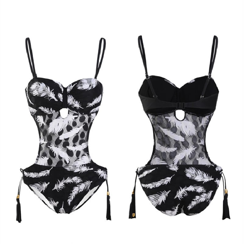水着 羽の模様 デザイン感 レース セクシー ブラック M L XL
